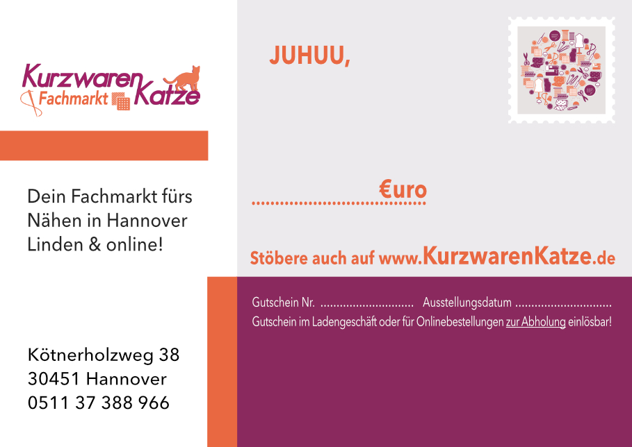 - Einlösbar für das gesamte Produktsortiment, auch für Nähkurse.