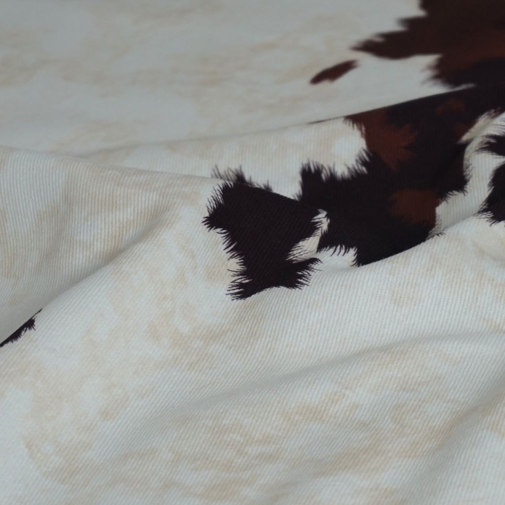 Baumwoll-Twill Hosenstoff Kuhprint hellbeige dunkelbraun