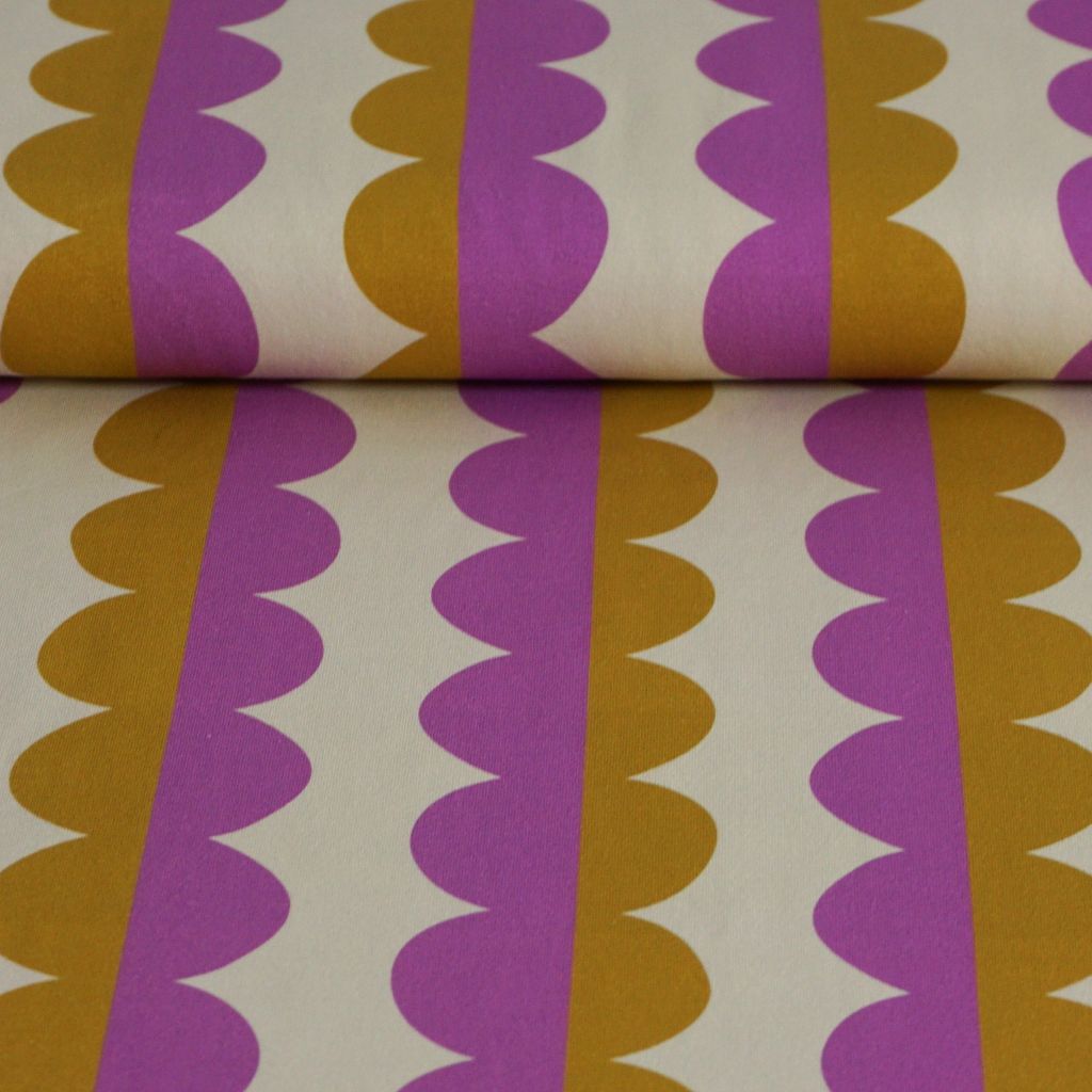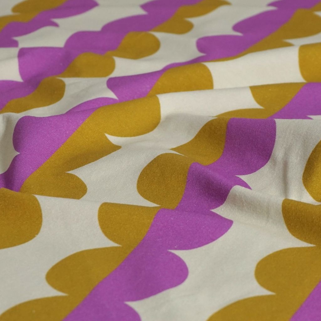 Baumwolljersey abstrakte Halbkreise caramelbraun fliederlila