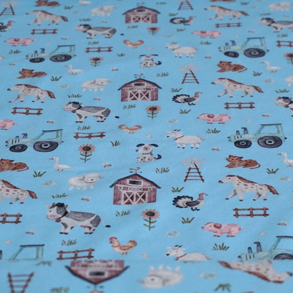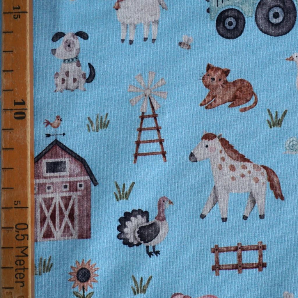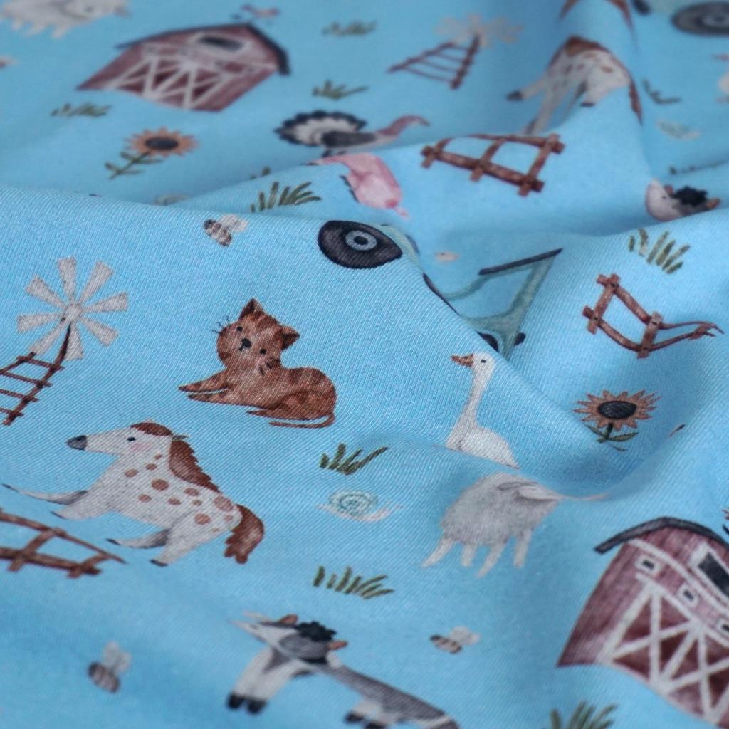Baumwolljersey Bauernhoftiere hellblau – FVJ
