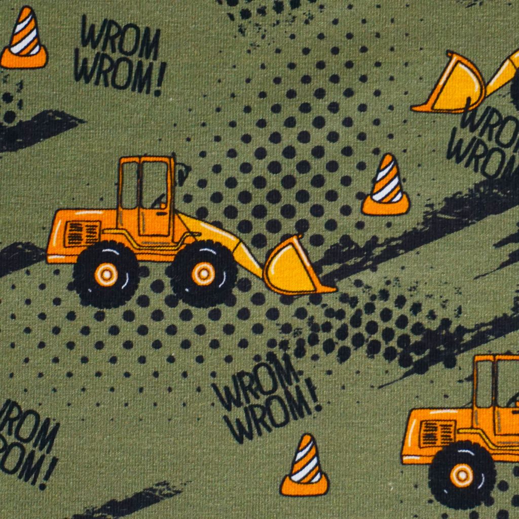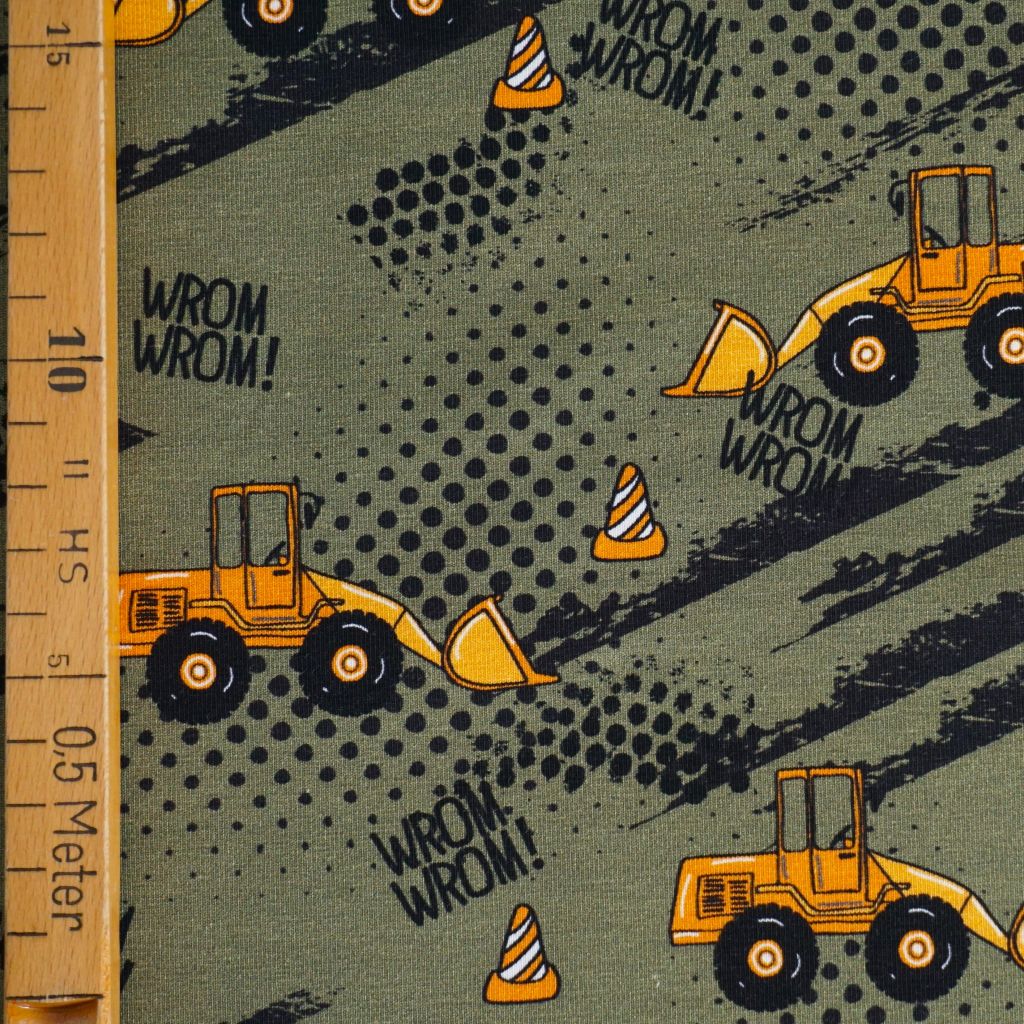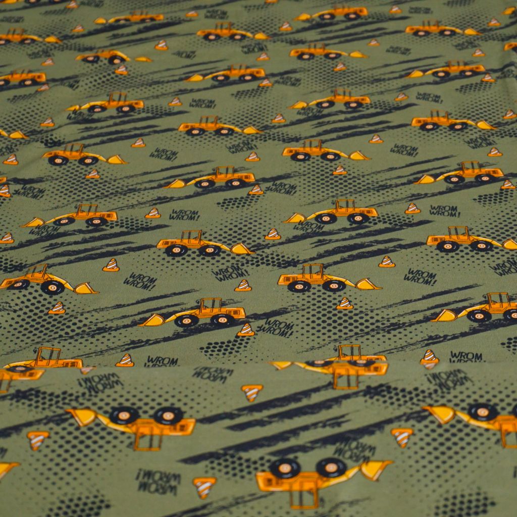 Baumwolljersey Baufahrzeuge Schaufelbagger grün – FVJ