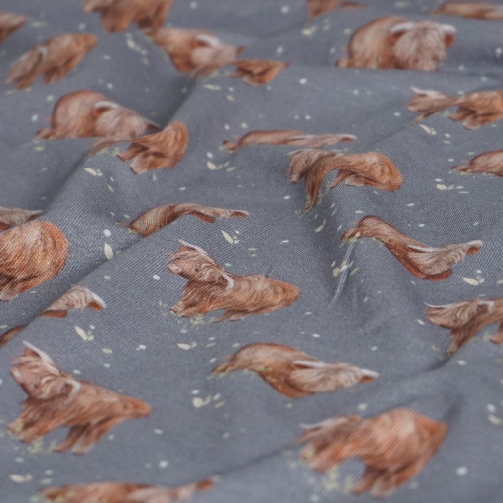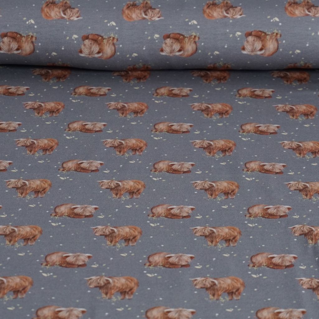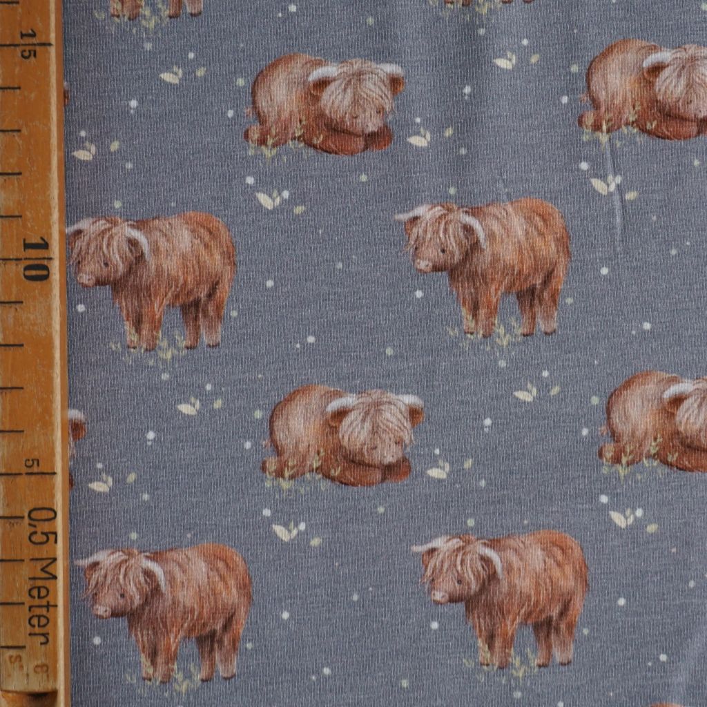 Dieser hochwertige Jersey ist aus Baumwolle mit einem kleinen Elasthan-Anteil für Elastizität und die optimale Passform. Der Singlejersey hat eine gute Qualität und das merkst du zu allererst beim Zuschneiden und anschließend beim Vernähen. Zwar rollt sich auch hier die Kante etwas ein, der Stoff hat jedoch genug Gewicht um gut auch mit der Haushaltsnähmaschine verarbeitet zu werden. Der ebenfalls hochwertige Motivdruck spricht für sich und sieht auch nach vielen Wäschen frisch aus.