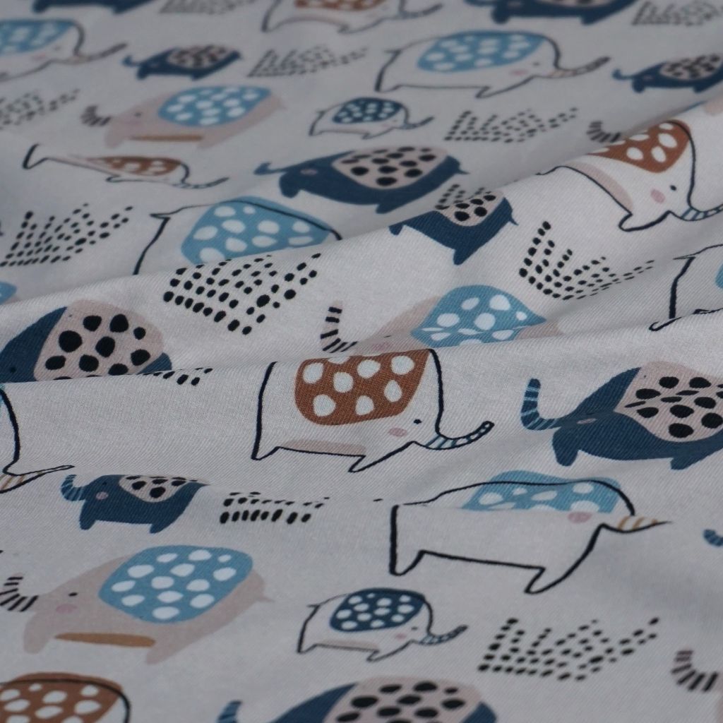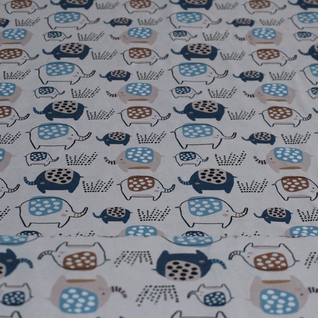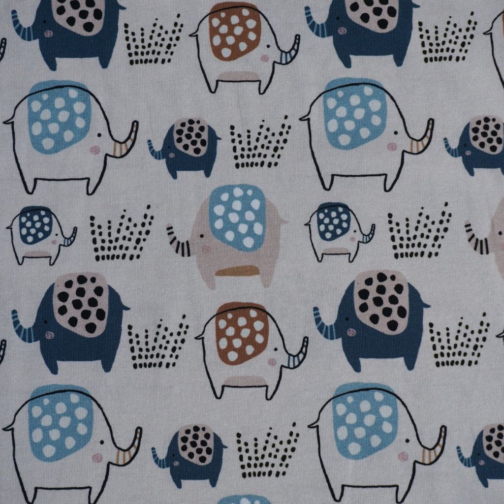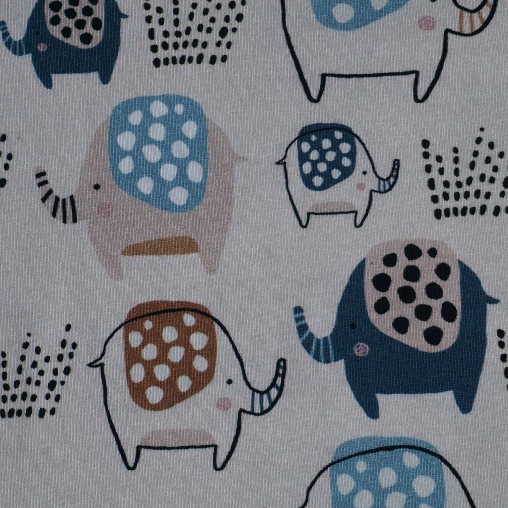 Dieser hochwertige Jersey ist aus Baumwolle mit einem kleinen Elasthan-Anteil für Elastizität und die optimale Passform. Der Singlejersey hat eine gute Qualität und das merkst du zu allererst beim Zuschneiden und anschließend beim Vernähen. Zwar rollt sich auch hier die Kante etwas ein, der Stoff hat jedoch genug Gewicht um gut auch mit der Haushaltsnähmaschine verarbeitet zu werden. Der ebenfalls hochwertige Motivdruck spricht für sich und sieht auch nach vielen Wäschen frisch aus.