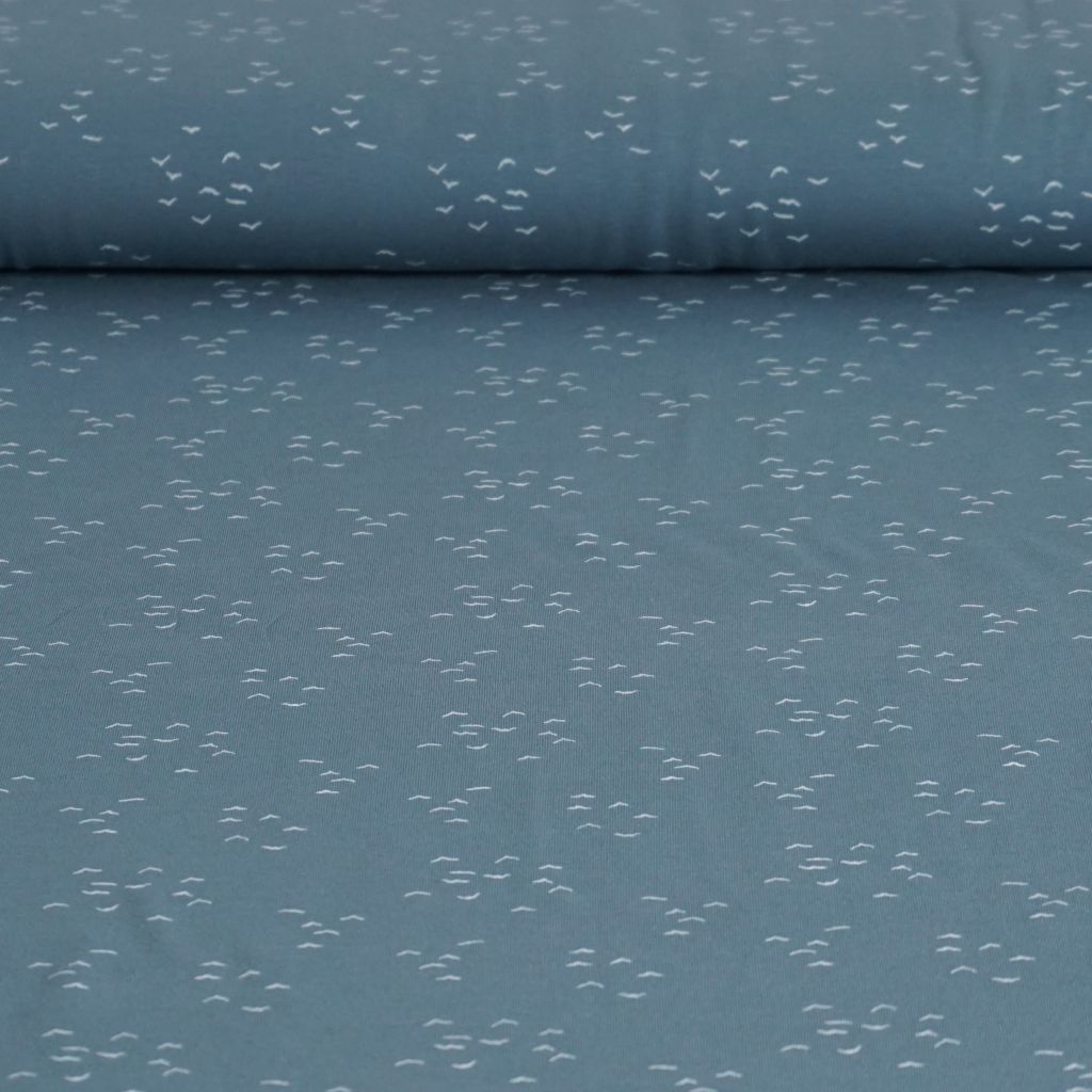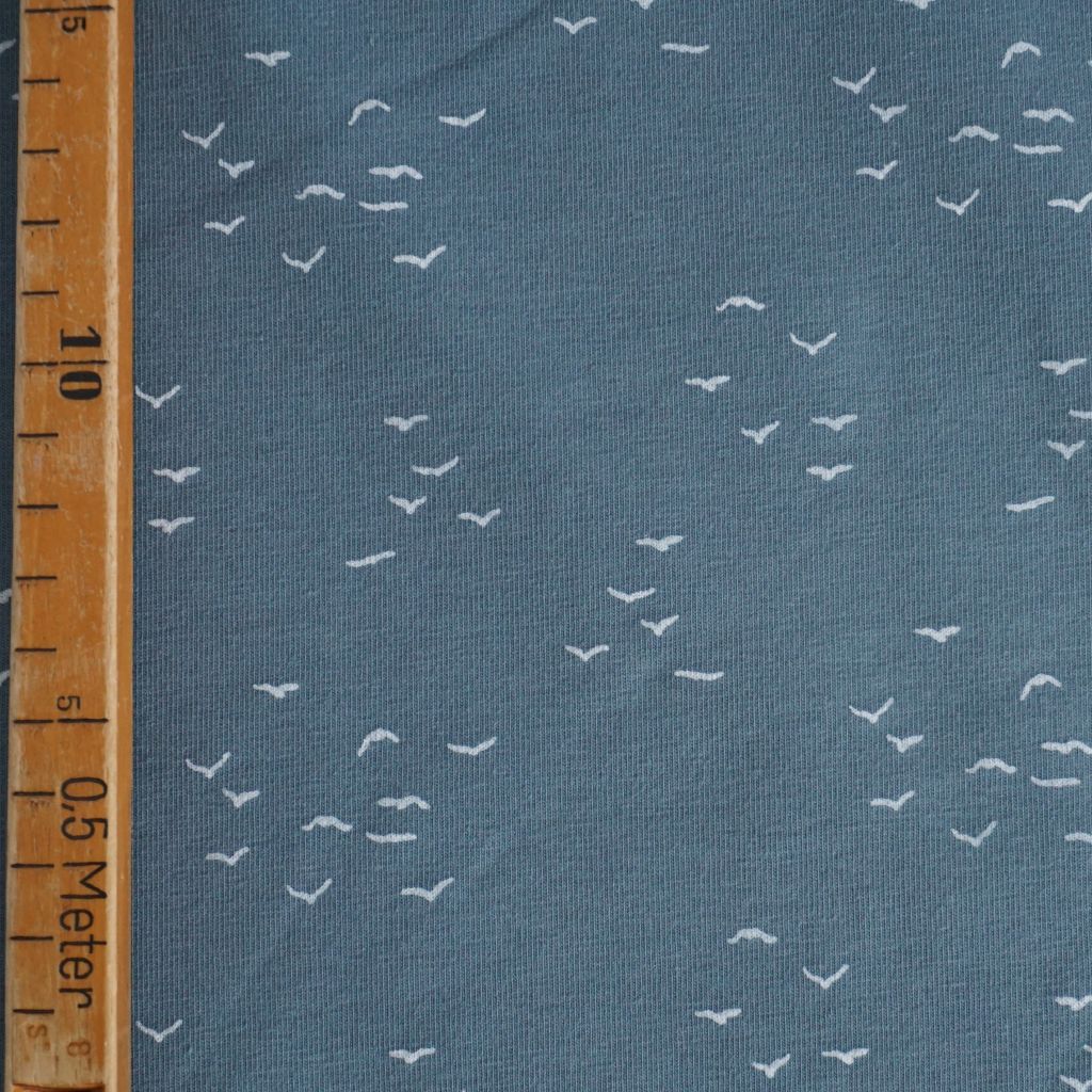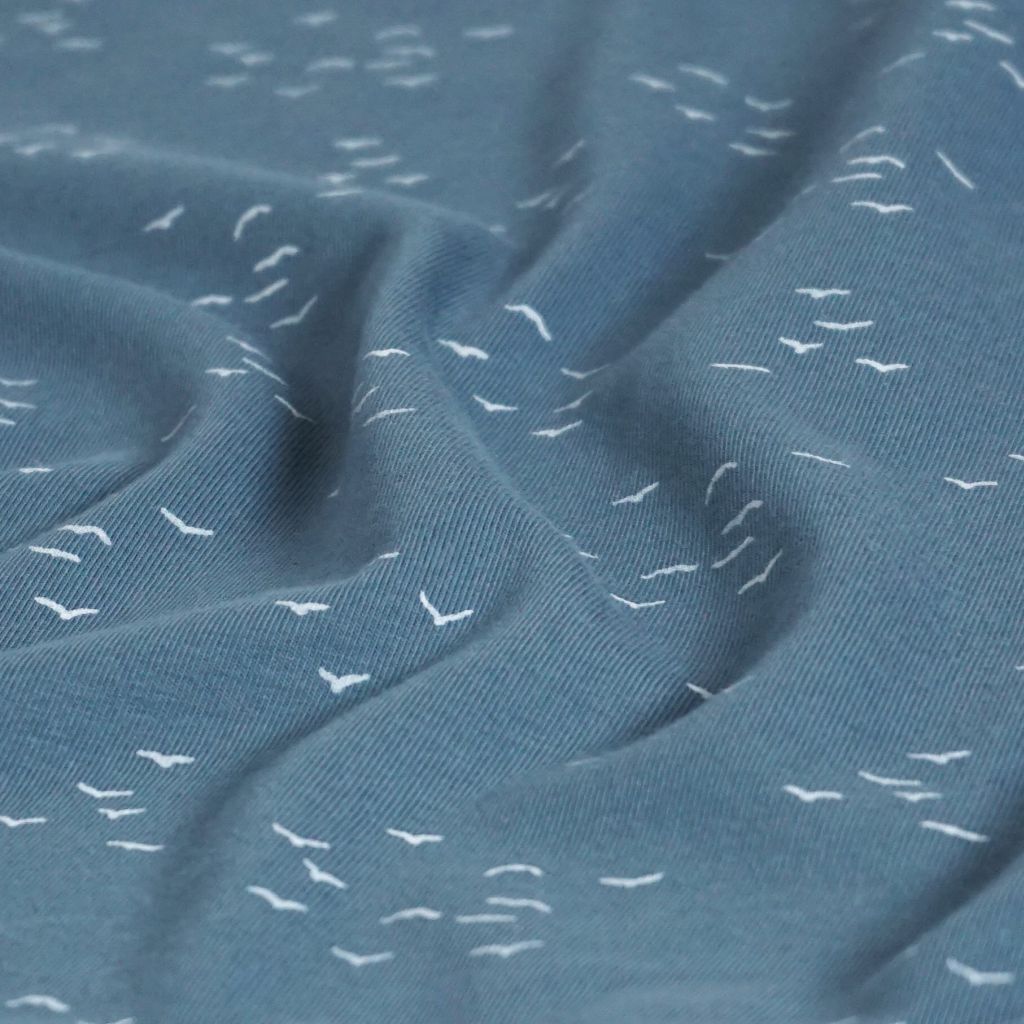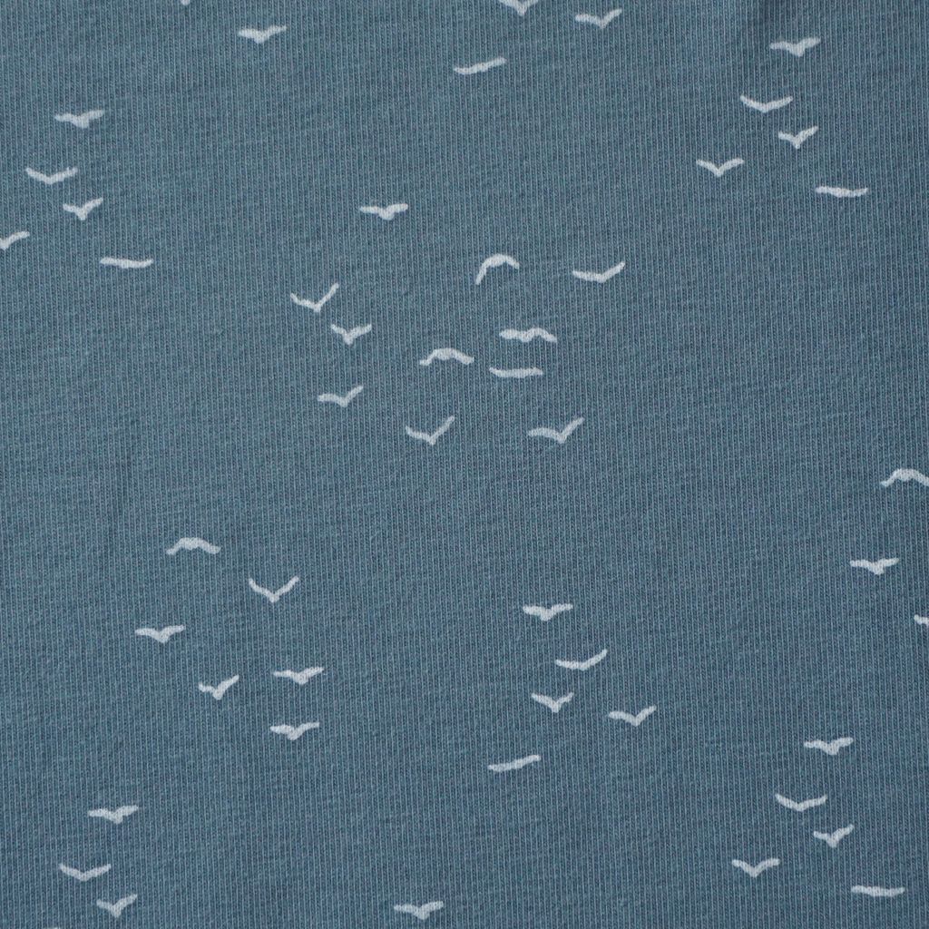 Baumwolljersey kleine Möwen auf graublau