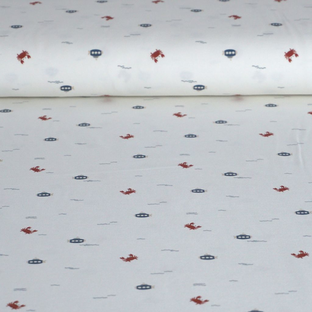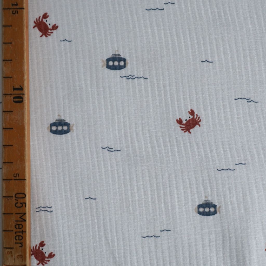 Baumwolljersey Krabben Krebse U-Boot auf ecru
