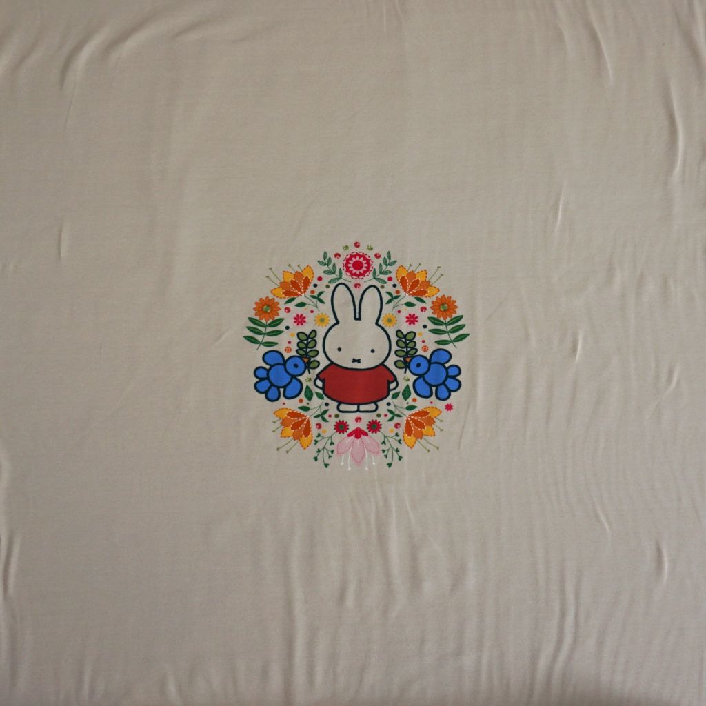 Baumwolljersey Panel Miffy Nijntje Kaninchen im Blütenkranz
