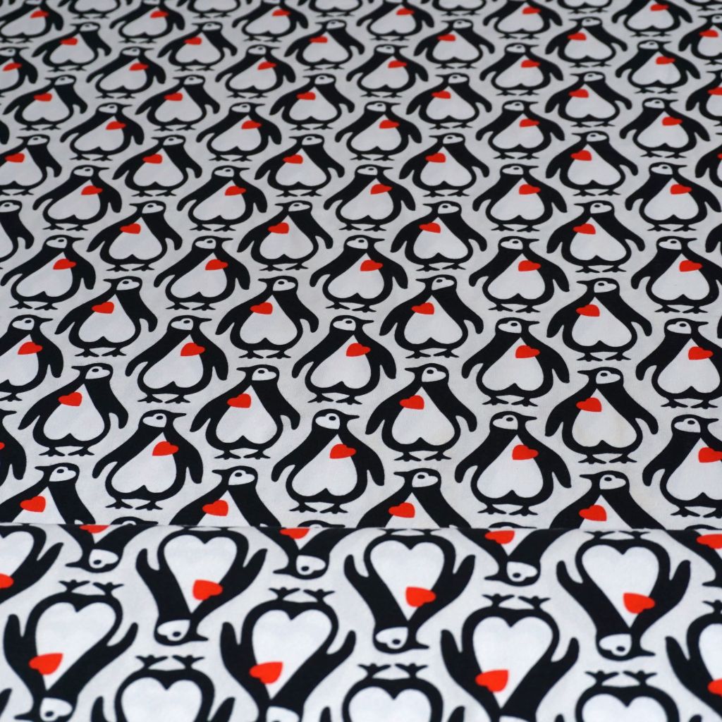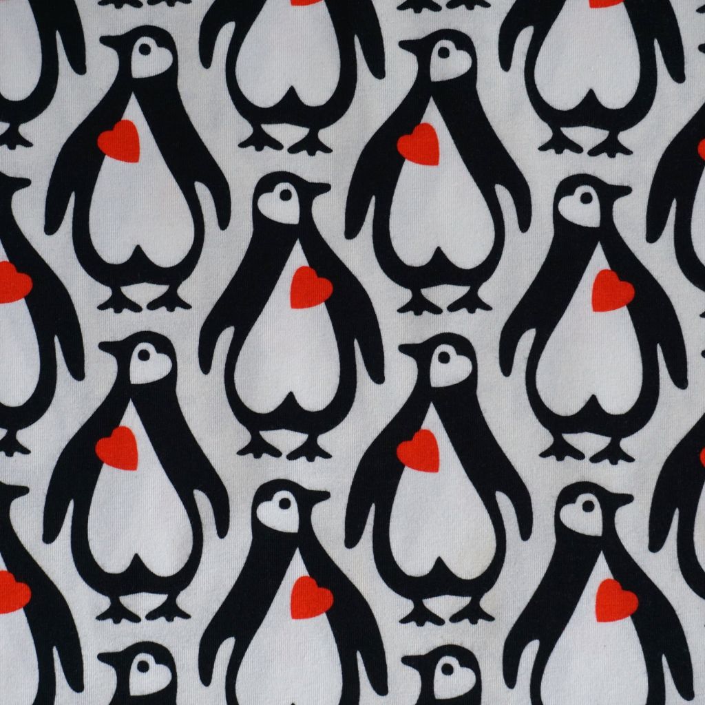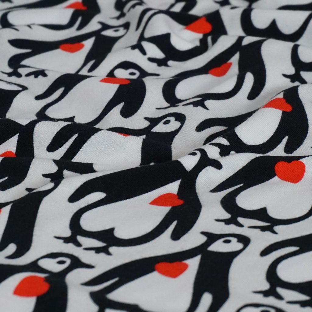 Baumwolljersey Pinguine mit Herz schwarz weiß rot