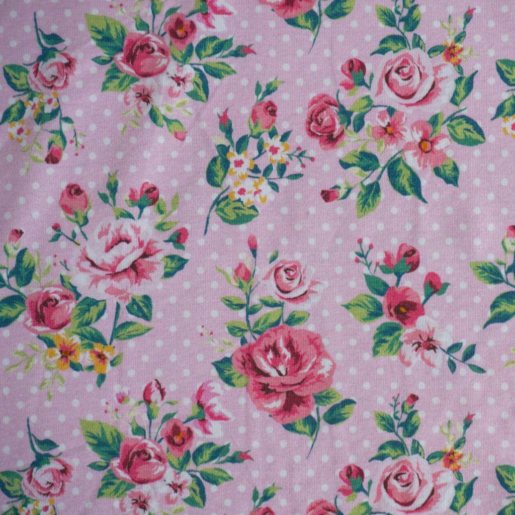 Baumwolljersey Rosenzweige Pünktchen rosa – FVJ