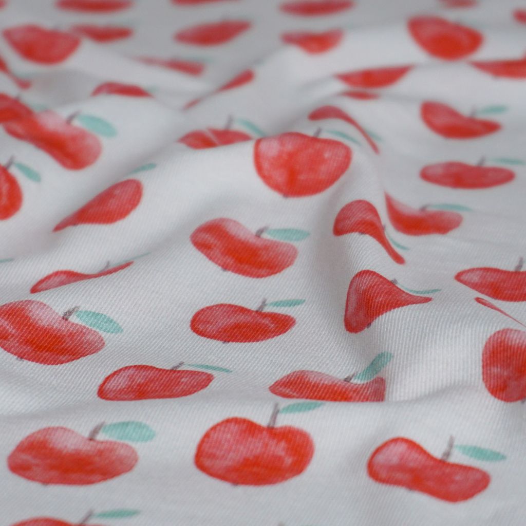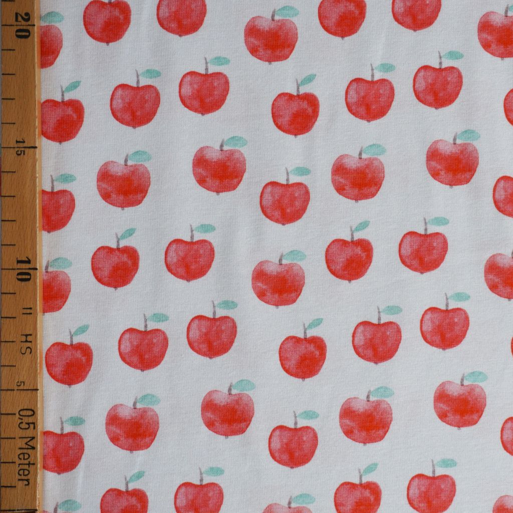 Baumwolljersey rote Äpfelchen Obst rot weiß – FVJ
