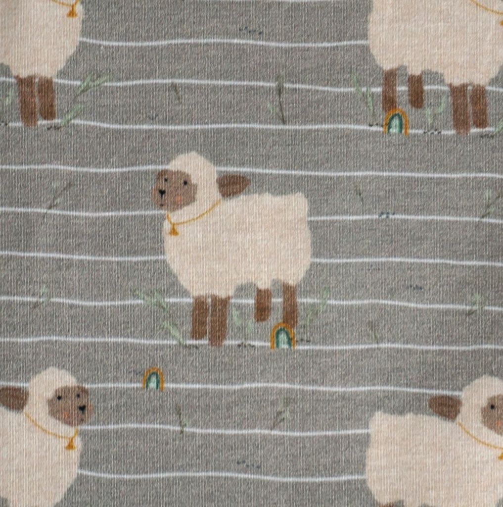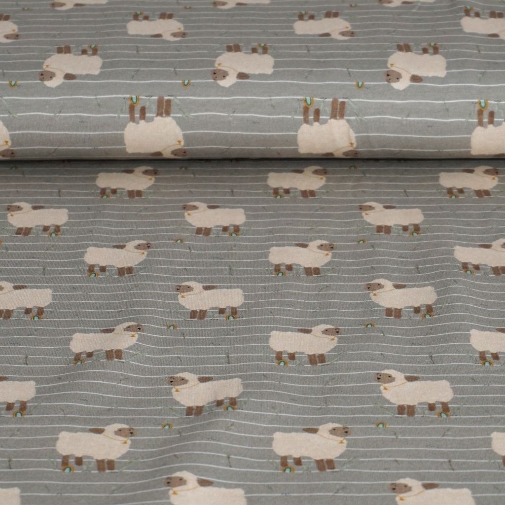 Dieser hochwertige Jersey ist aus Baumwolle mit einem kleinen Elasthan-Anteil für Elastizität und die optimale Passform. Der Singlejersey hat eine gute Qualität und das merkst du zu allererst beim Zuschneiden und anschließend beim Vernähen. Zwar rollt sich auch hier die Kante etwas ein, der Stoff hat jedoch genug Gewicht um gut auch mit der Haushaltsnähmaschine verarbeitet zu werden. Der ebenfalls hochwertige Motivdruck spricht für sich und sieht auch nach vielen Wäschen frisch aus.