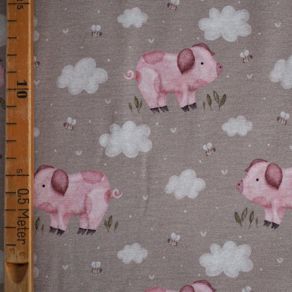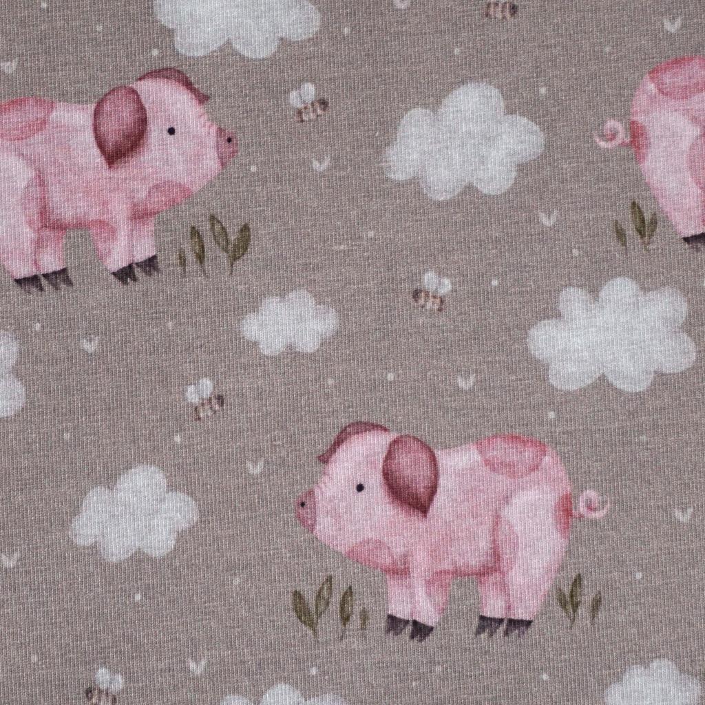 Dieser hochwertige Jersey ist aus Baumwolle mit einem kleinen Elasthan-Anteil für Elastizität und die optimale Passform. Der Singlejersey hat eine gute Qualität und das merkst du zu allererst beim Zuschneiden und anschließend beim Vernähen. Zwar rollt sich auch hier die Kante etwas ein, der Stoff hat jedoch genug Gewicht um gut auch mit der Haushaltsnähmaschine verarbeitet zu werden. Der ebenfalls hochwertige Motivdruck spricht für sich und sieht auch nach vielen Wäschen frisch aus.
