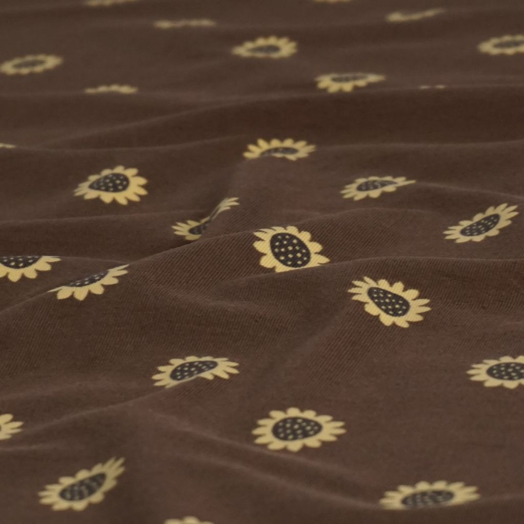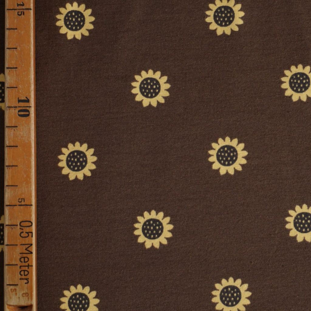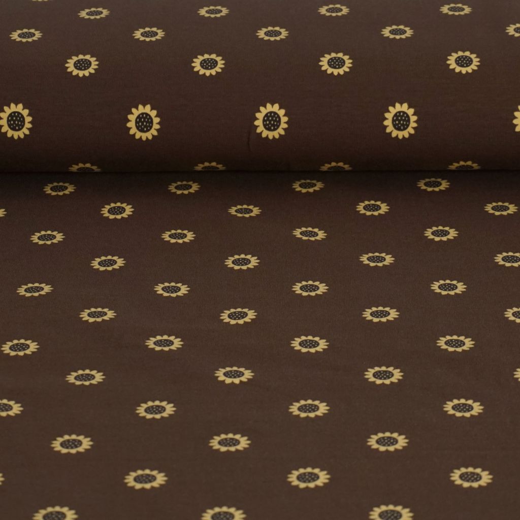 Baumwolljersey Sonnenblumen auf braun