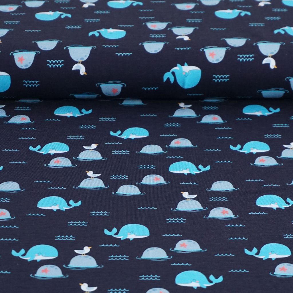 Baumwolljersey Wale und Möwe dunkelblau – FVJ