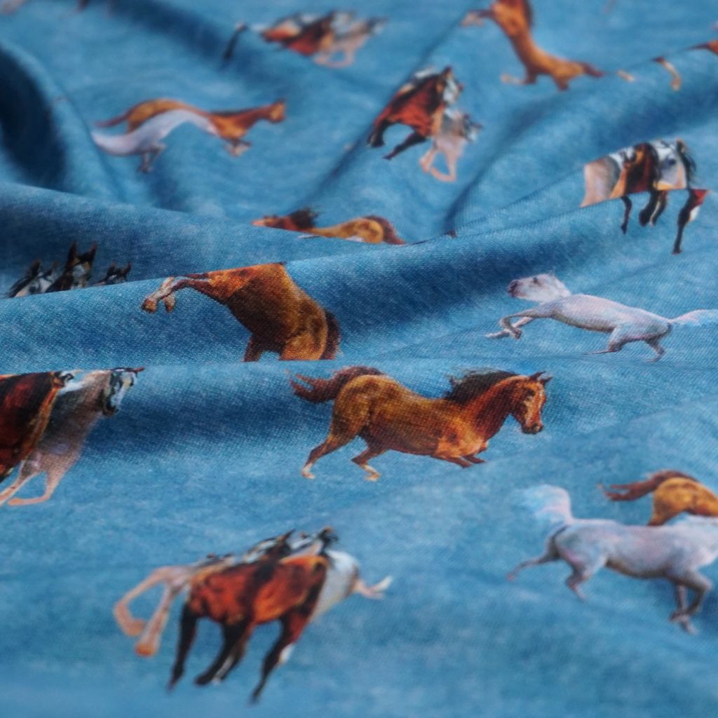 Dieser Jerseystoff ist ein klassischer Singlejersey mit einem kleinen Elasthan-Anteil für die optimale Passform. Der Tricotstoff ist pflegeleicht, atmungsaktiv und bequem und so perfekt für viele körpernahe Kleidungsstücke mit schönem Motivdruck geeignet.