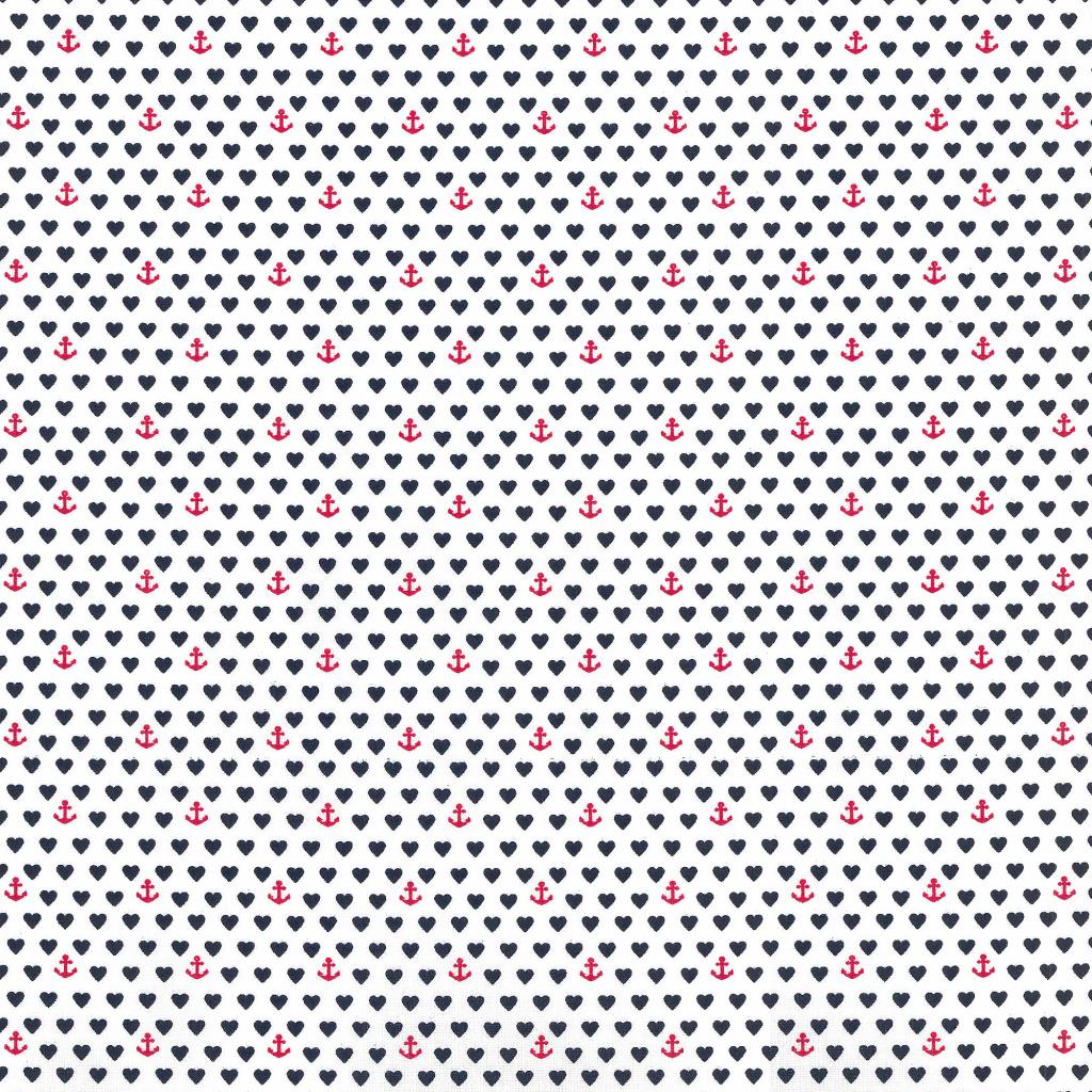 Baumwollstoff Hamburg Herz Anker blau weiß -Westfalenstoffe