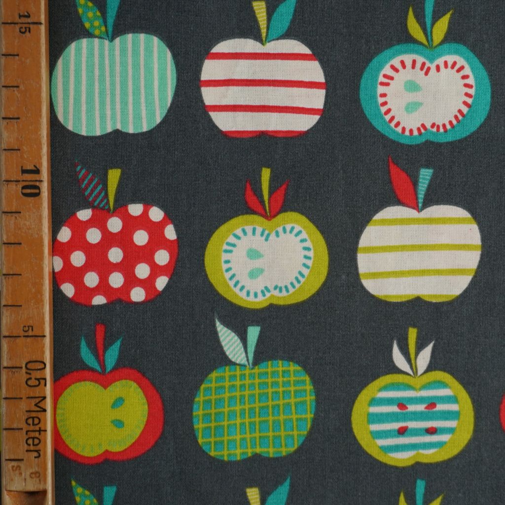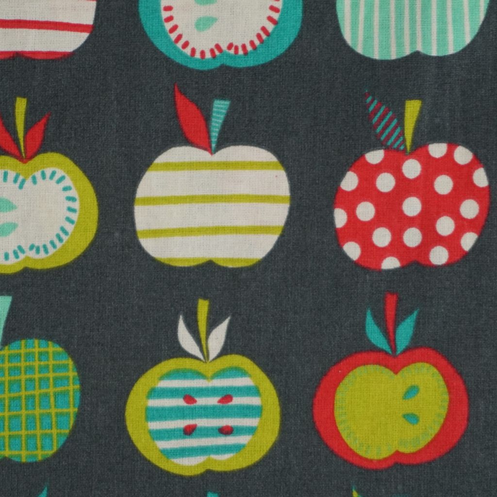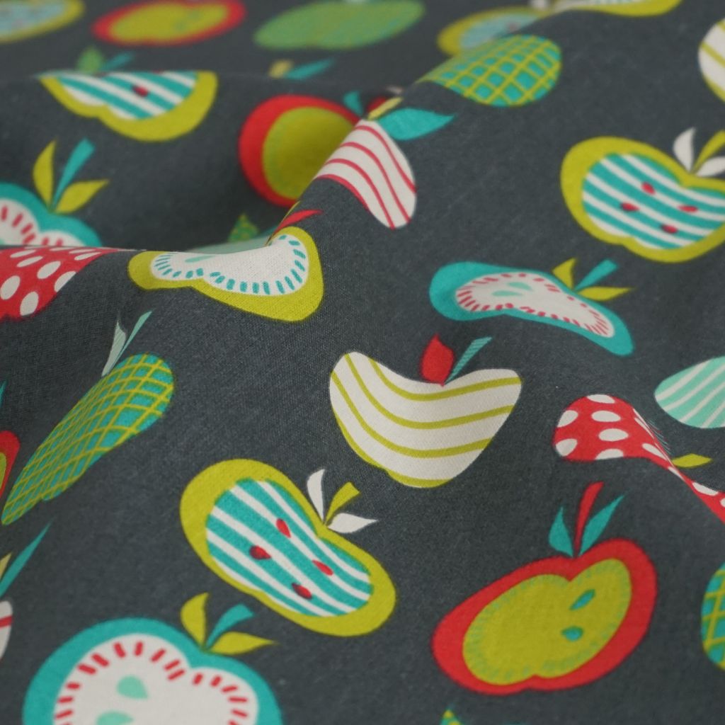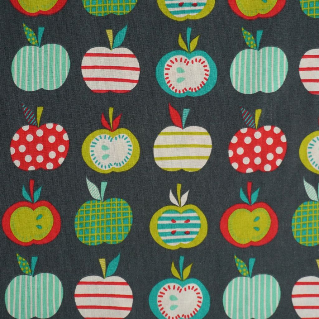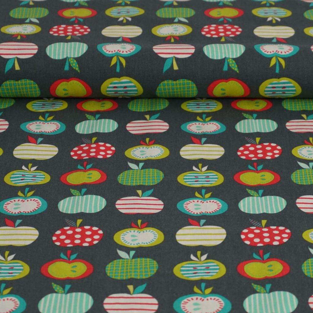 Baumwollstoff Motivdruck Äpfel grün rot auf grau