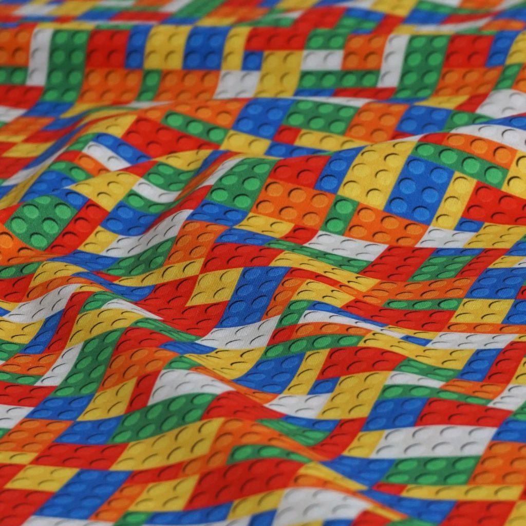 Baumwollstoff Motivdruck Bausteine bunt