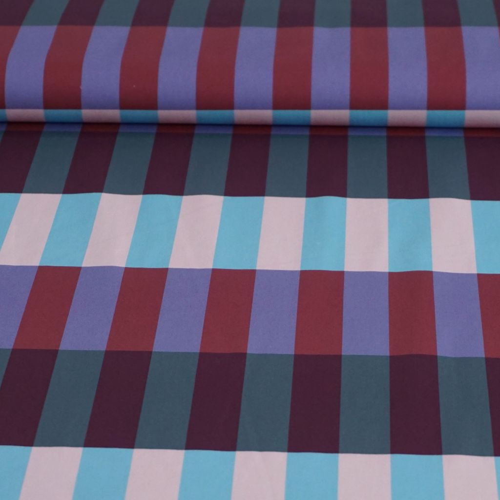 Baumwollstoff Motivdruck Blocks hellblau flieder weinrot