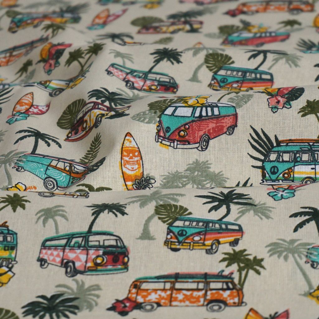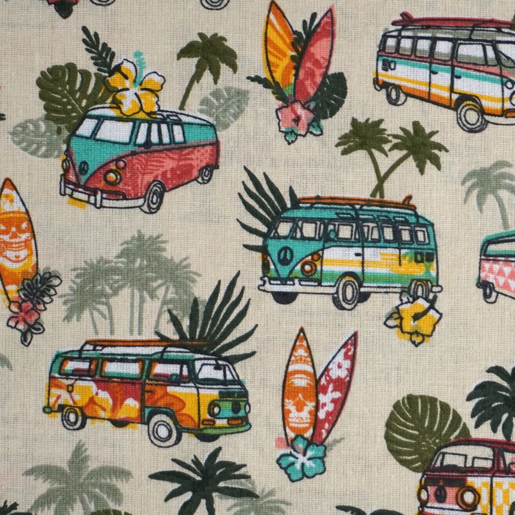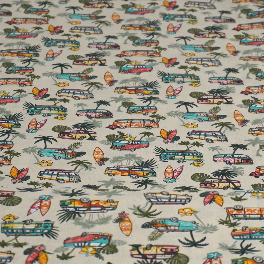 Baumwollstoff Motivdruck Caravan Surfen Camping