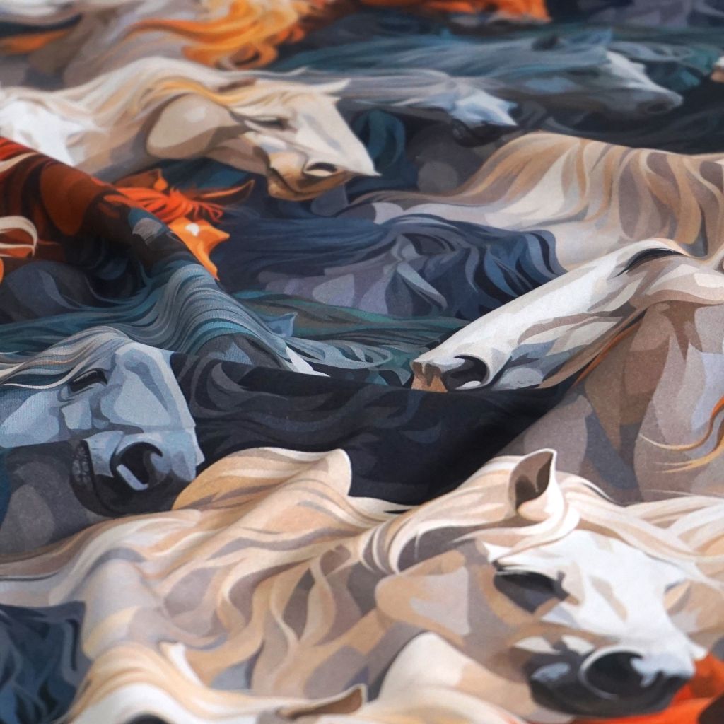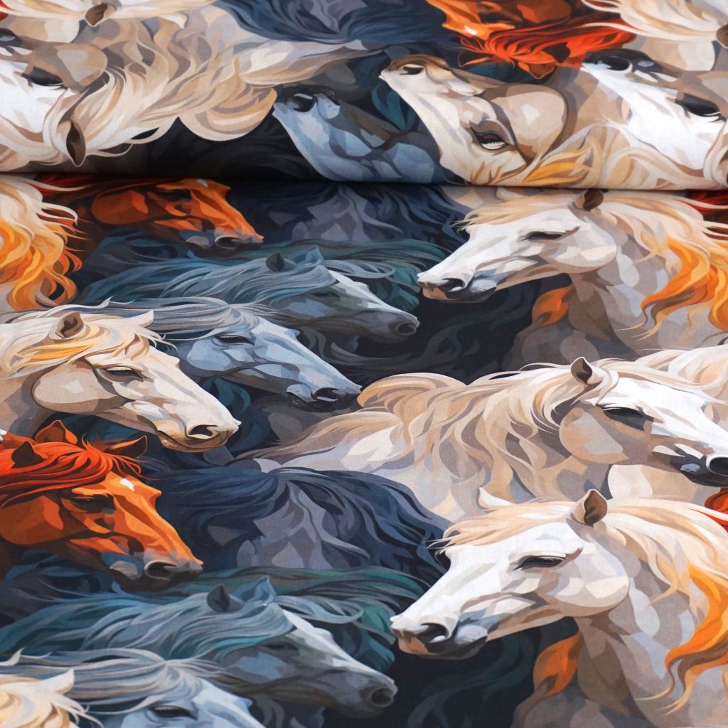 Baumwollstoff Motivdruck digital Pferde allover