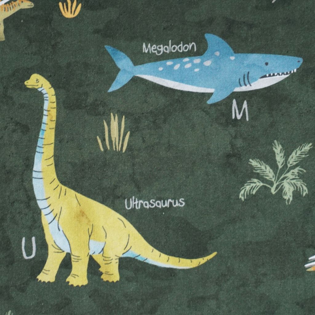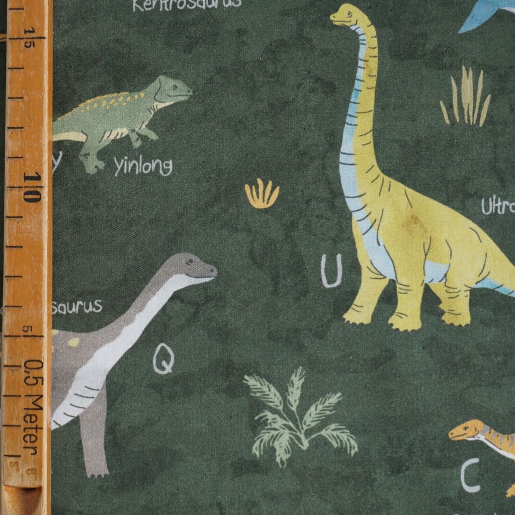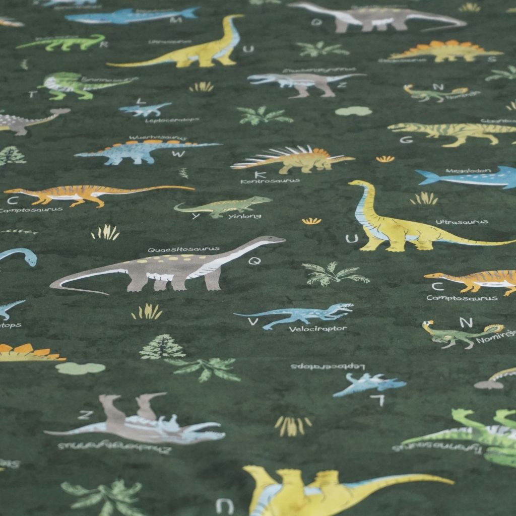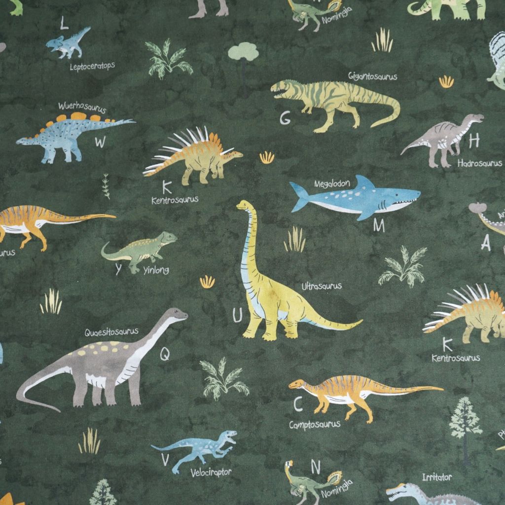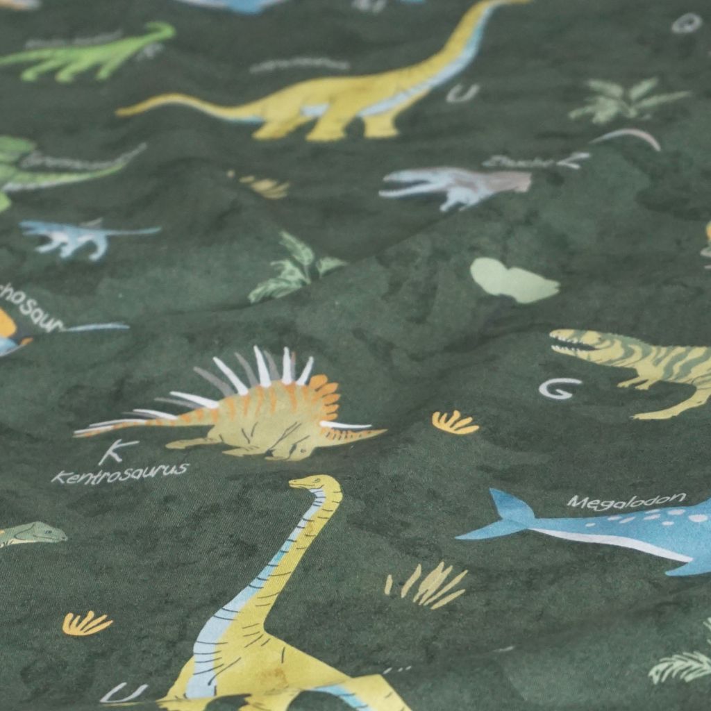 Baumwollstoff Motivdruck Dinosauerierarten auf grün