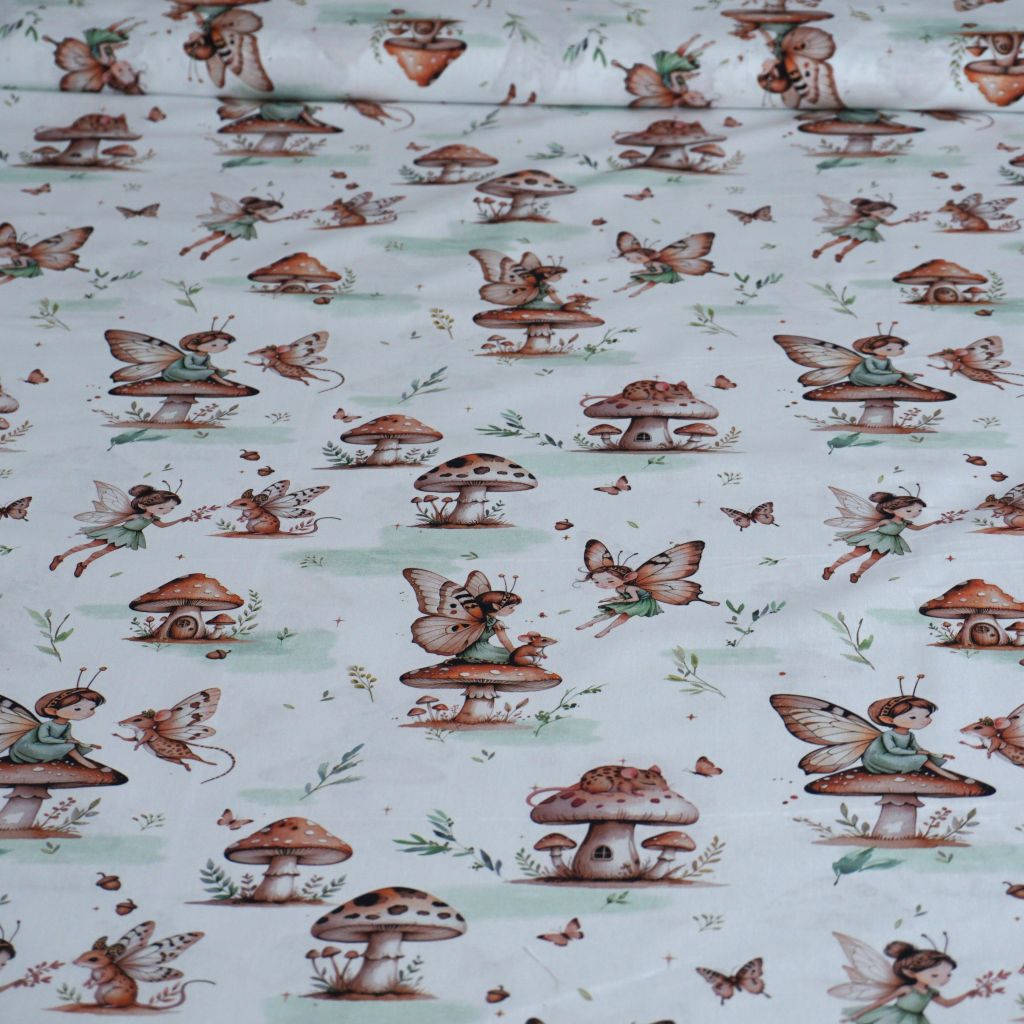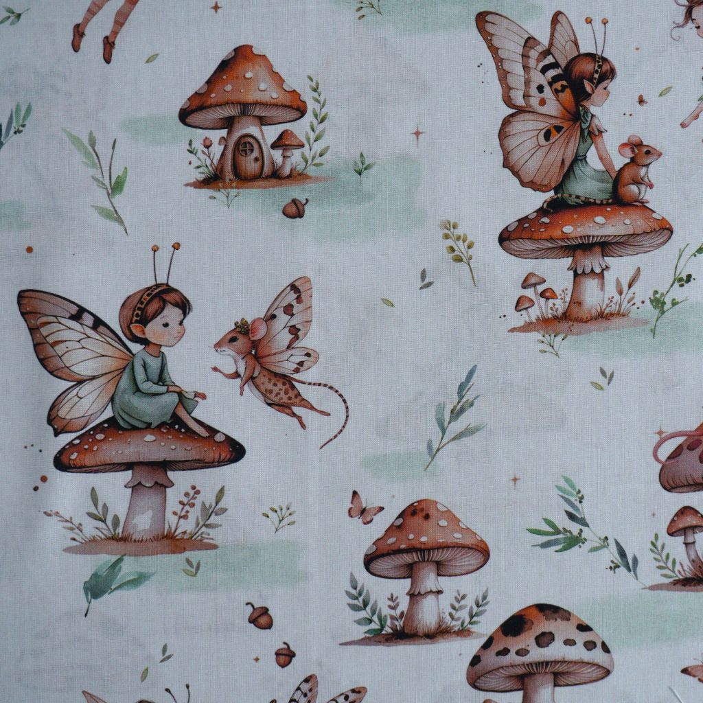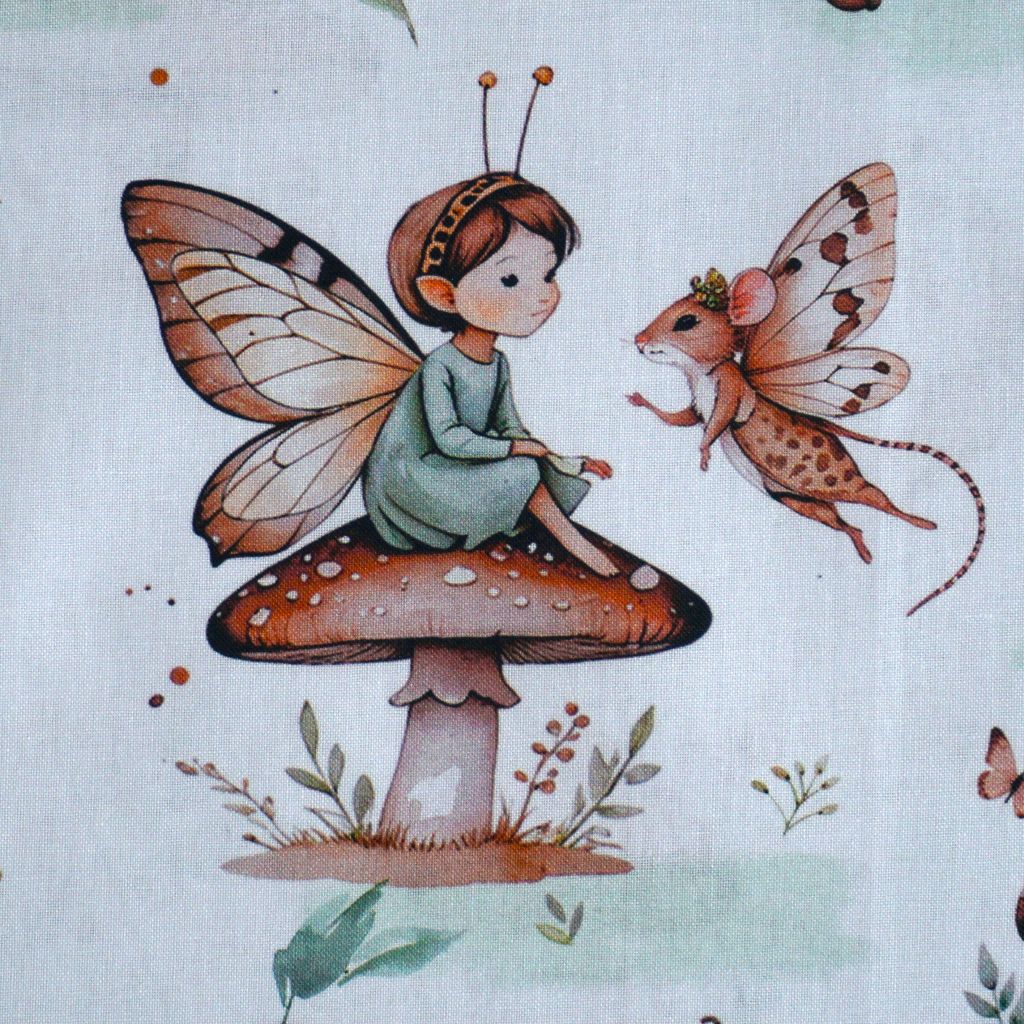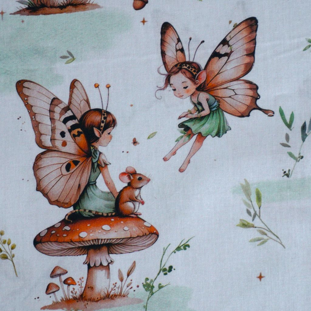 Baumwollstoff Motivdruck Feen und Mäuse
