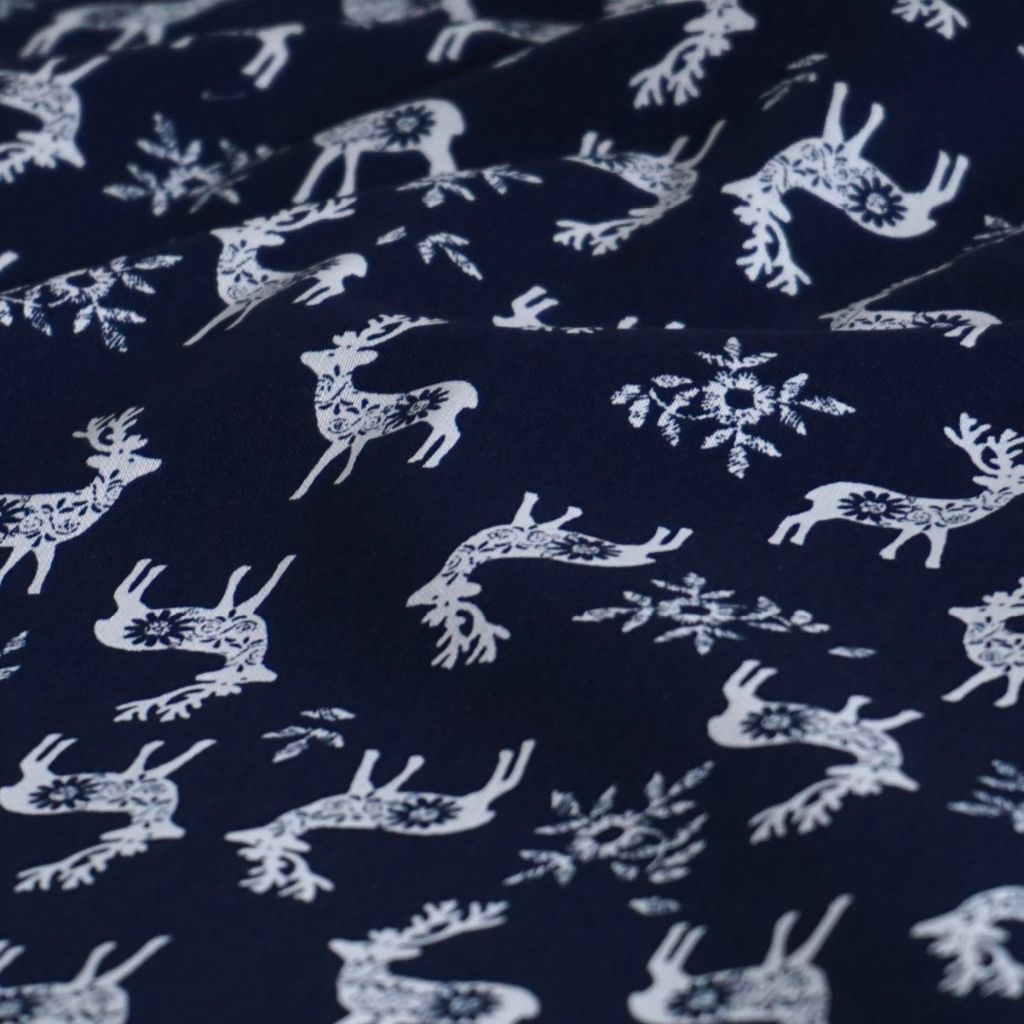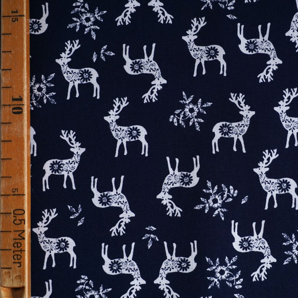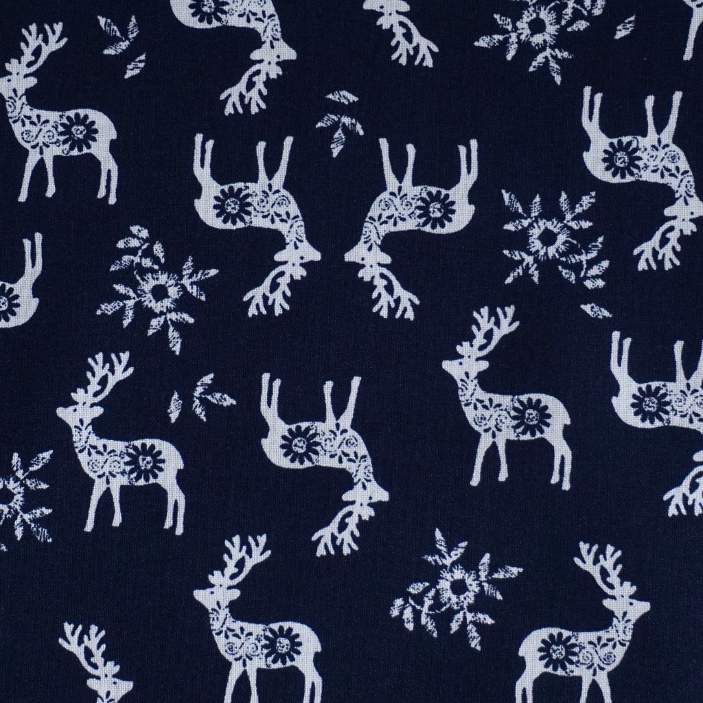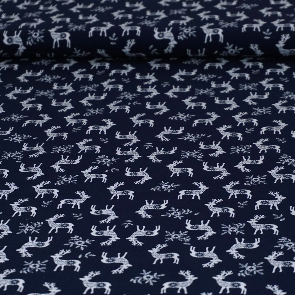 Baumwollstoff Motivdruck Hirsch nordisch dunkelblau
