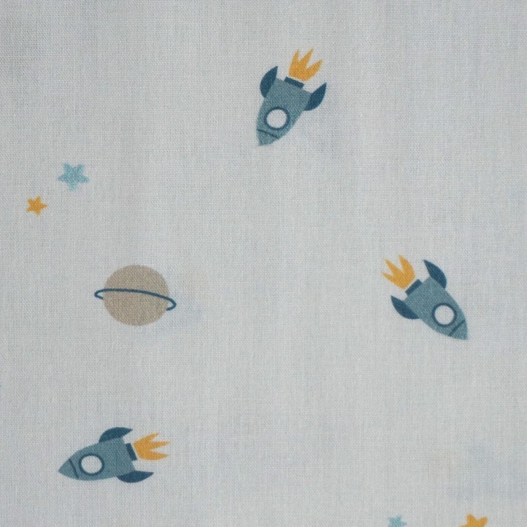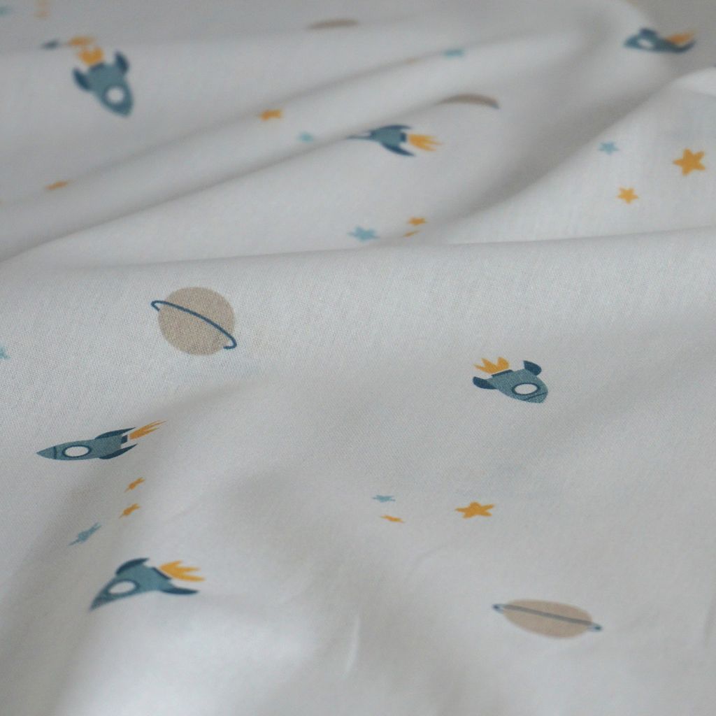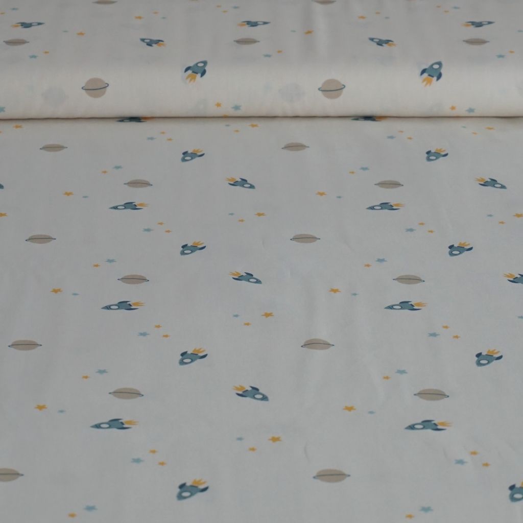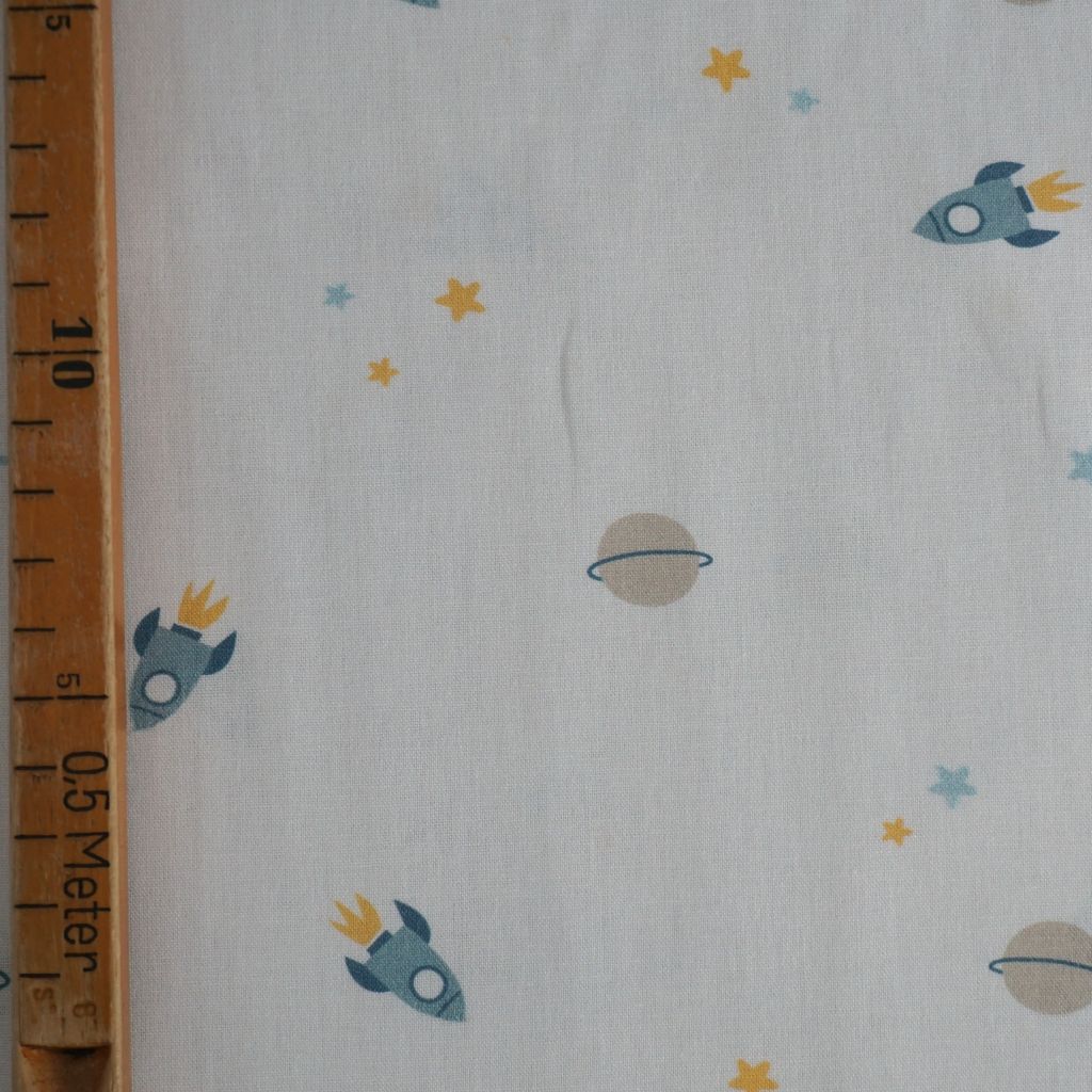 Baumwollstoff Motivdruck kleine Raketen auf ecru
