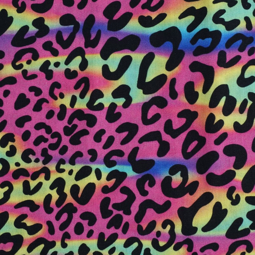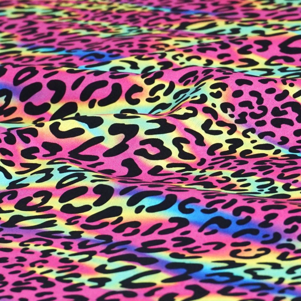 Baumwollstoff Motivdruck Leo pink grün gelb 80er Look
