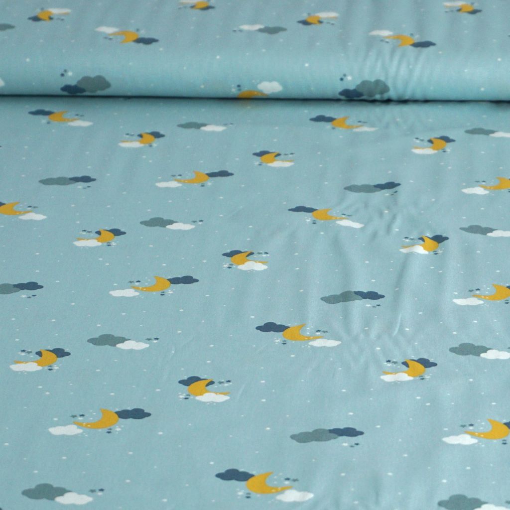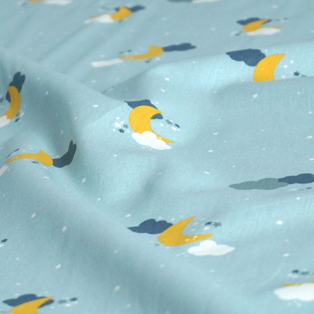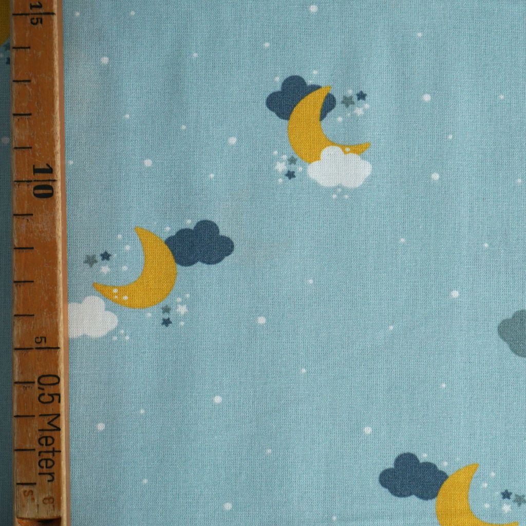 Baumwollstoff Motivdruck Mond Sterne hellblau
