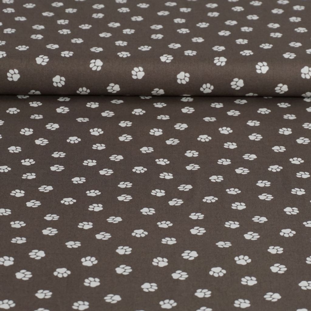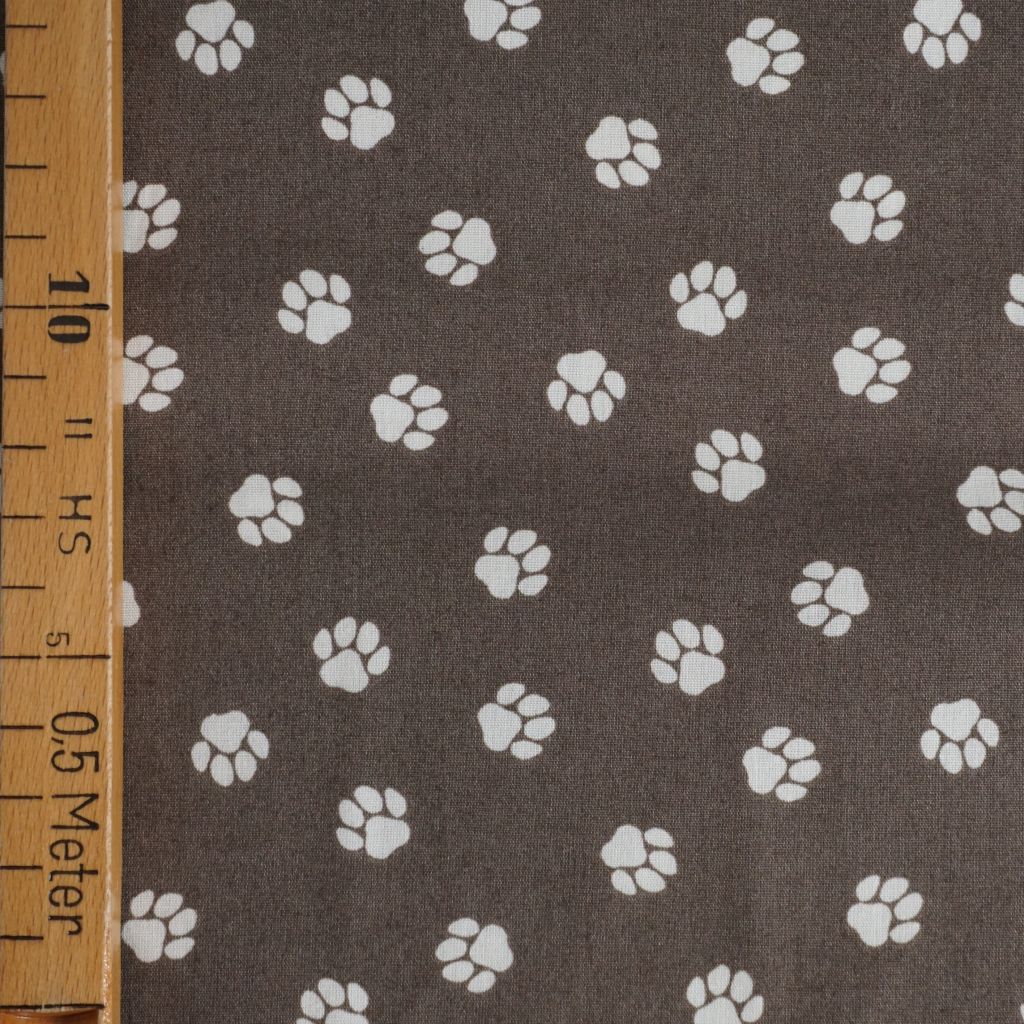 Baumwollstoff Motivdruck Pfoten Tatzenabdrücke braungrau
