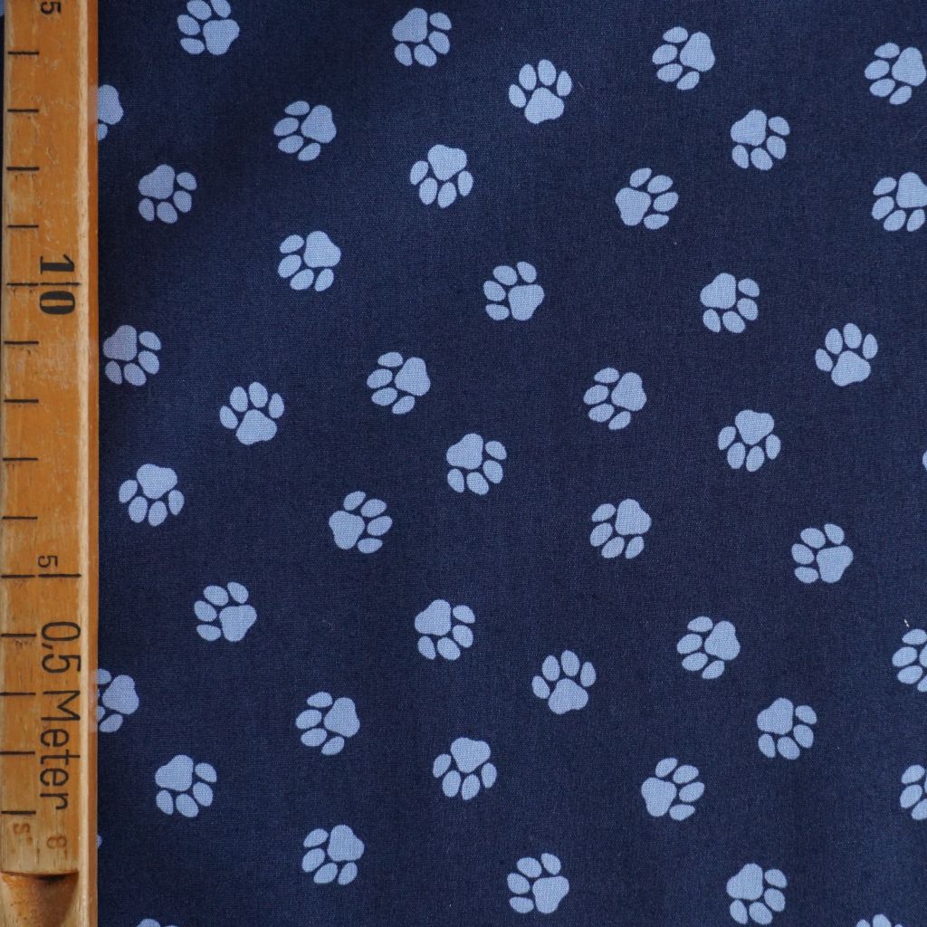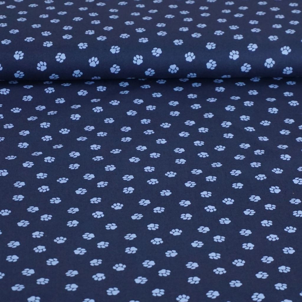 Baumwollstoff Motivdruck Pfoten Tatzenabdrücke dunkelblau