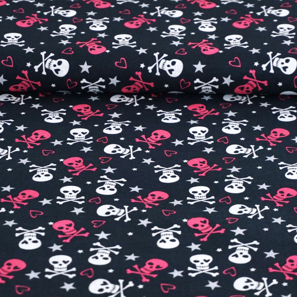 Baumwollstoff Motivdruck Pink Skulls Totenköpfe Skulls