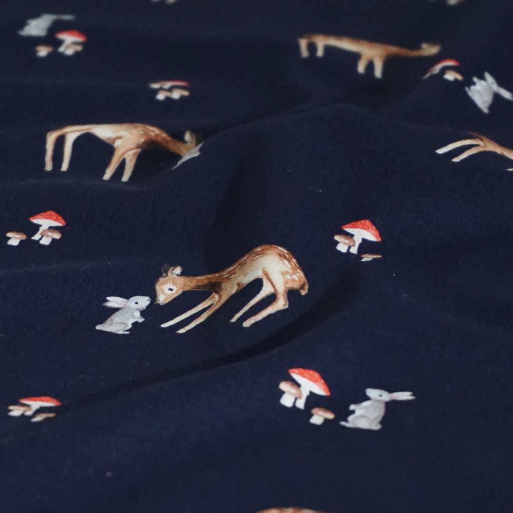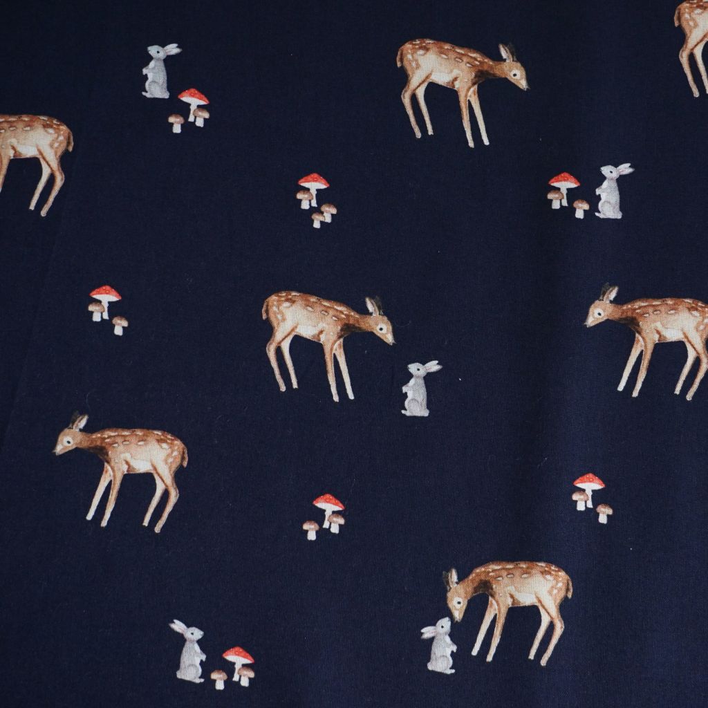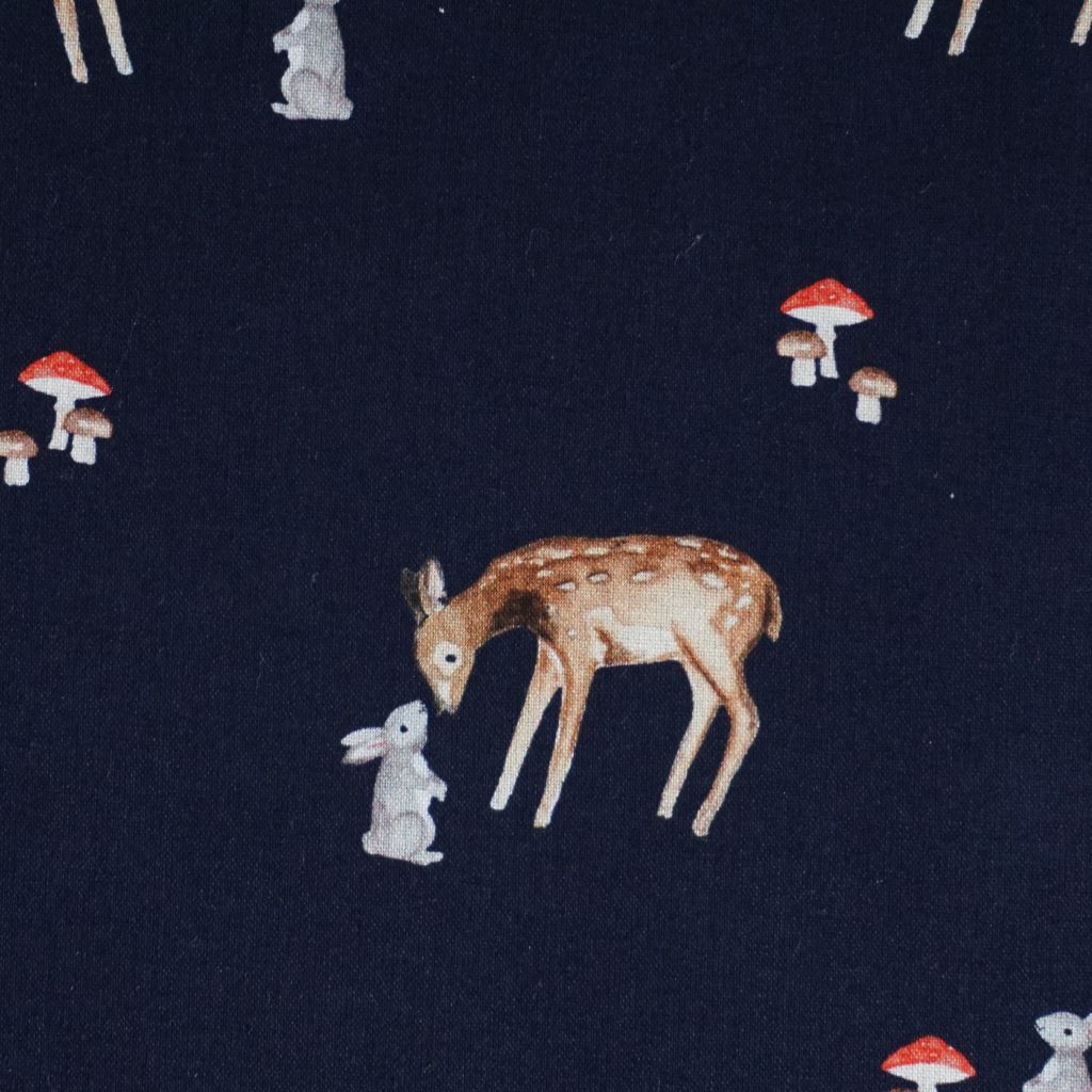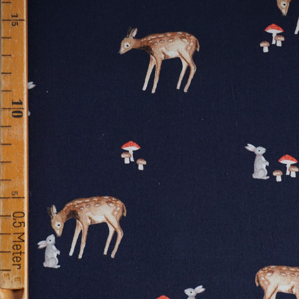 Baumwollstoff Motivdruck Reh und Hase dunkelblau
