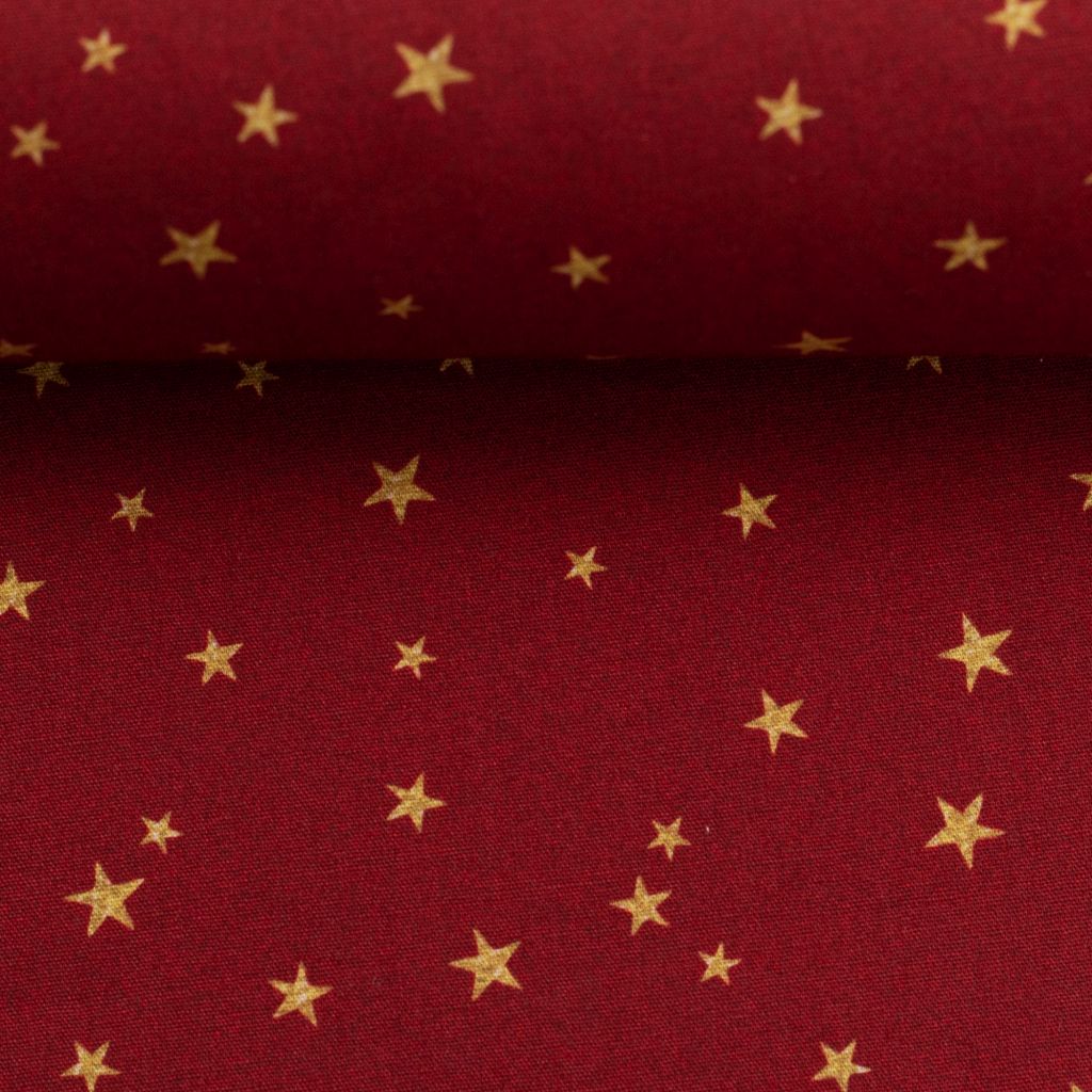 Baumwollstoff Motivdruck Stern goldgelb auf dunkelrot