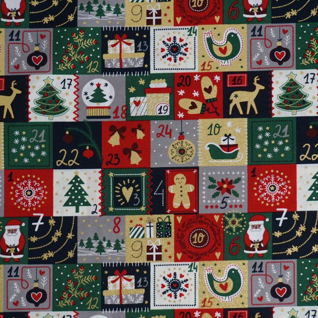 Baumwollstoff Motivdruck Weihnachtsmotive Adventskalender