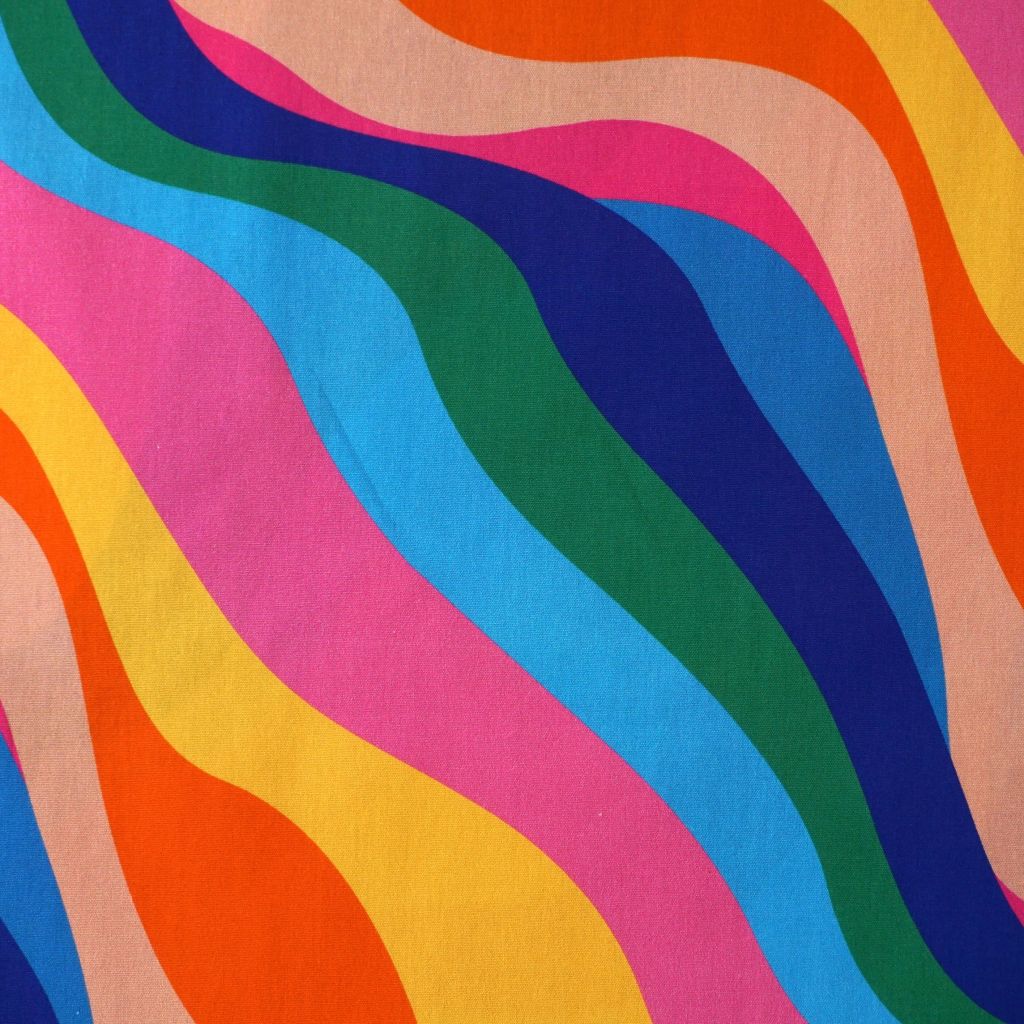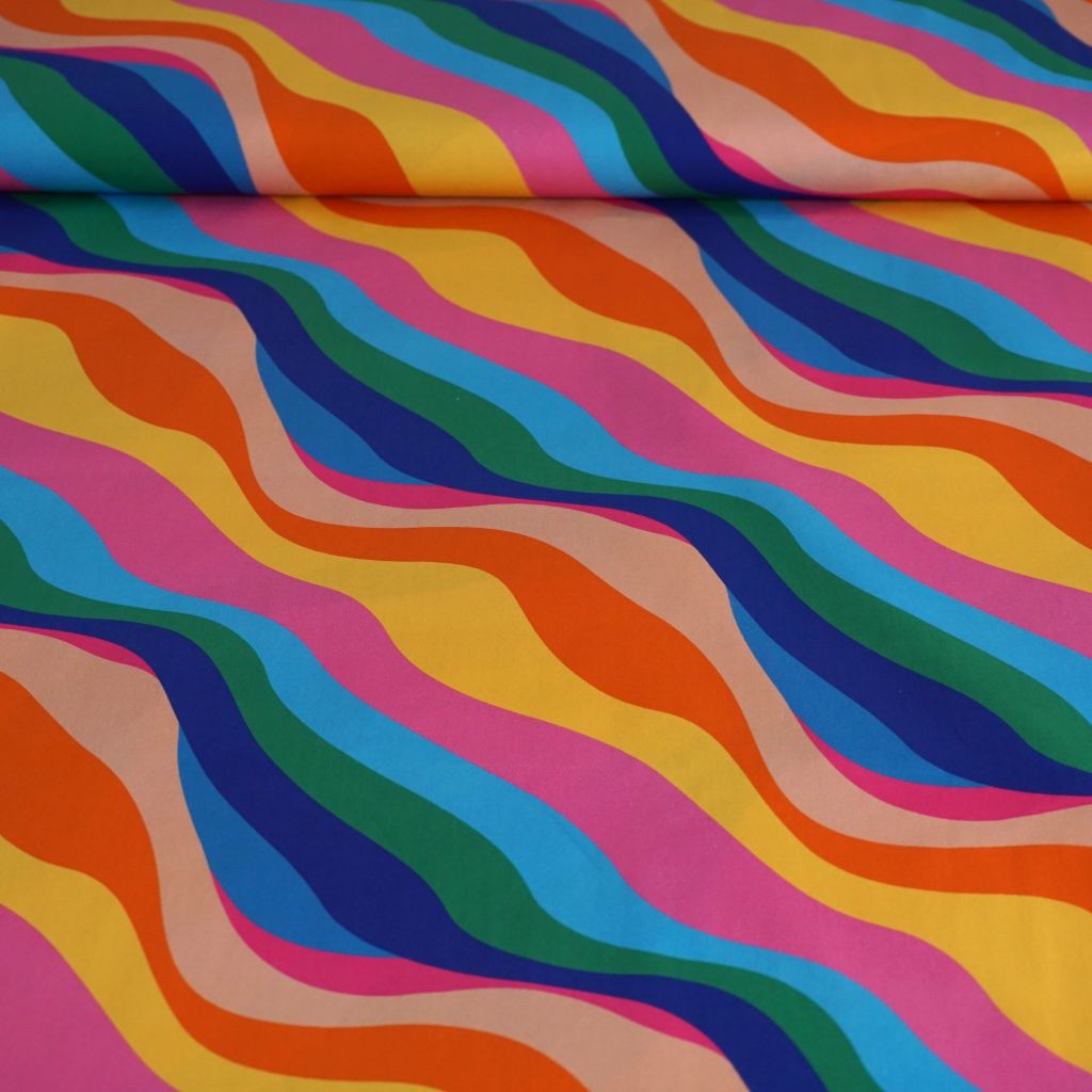 Baumwollstoff Motivdruck Wellen regenbogenbunt