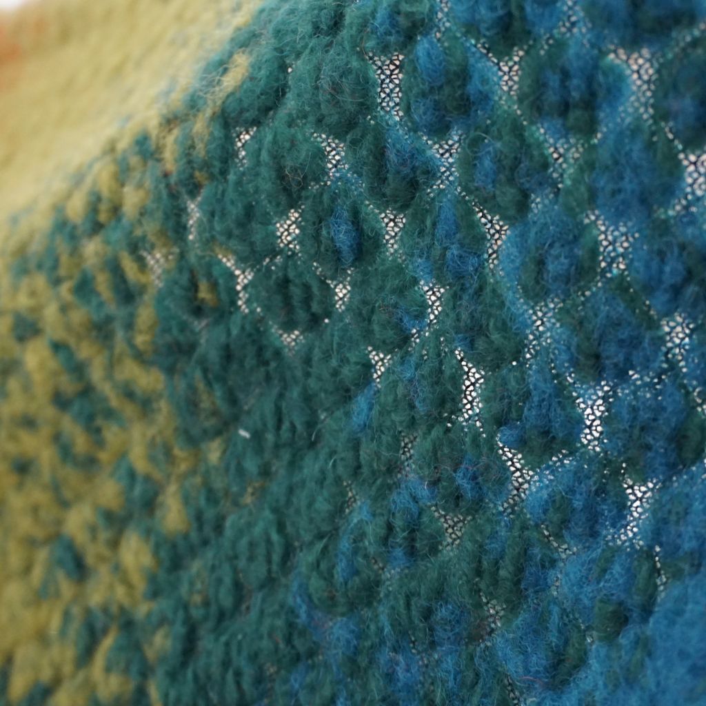 Wow, der tolle Farbverlauf ist wirklich aufregend. Näh dir aus diesem tollen Wollstoff am besten ein Kleidungsstück wie Mantel oder Kleid mit wenig Schnittunterteilungen und großen Flächen. Der Boucléstrick wirkt für sich.