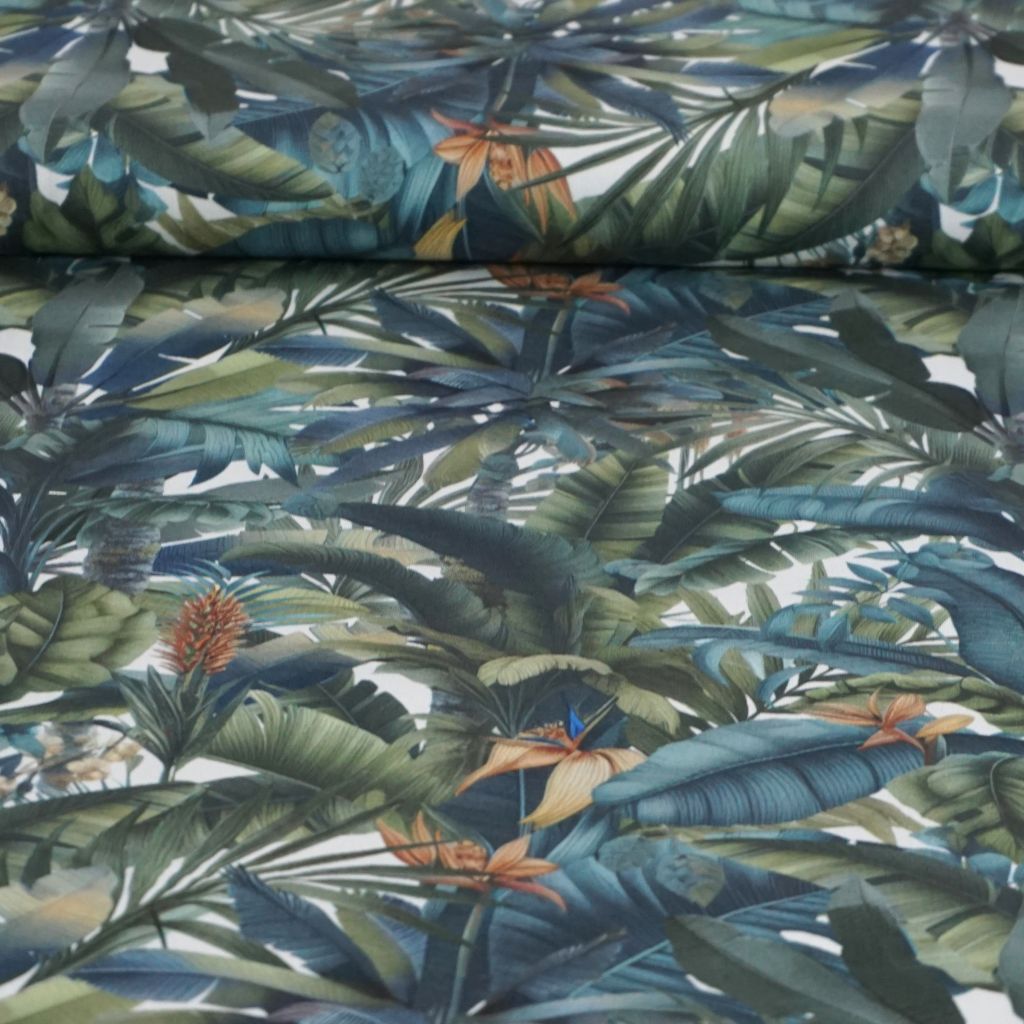Dekostoff Halbpanama Dschungel grün petrolblau