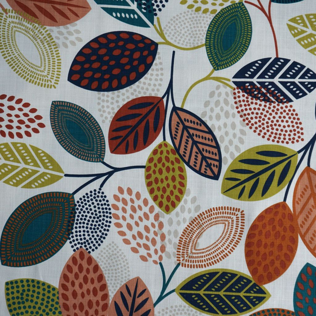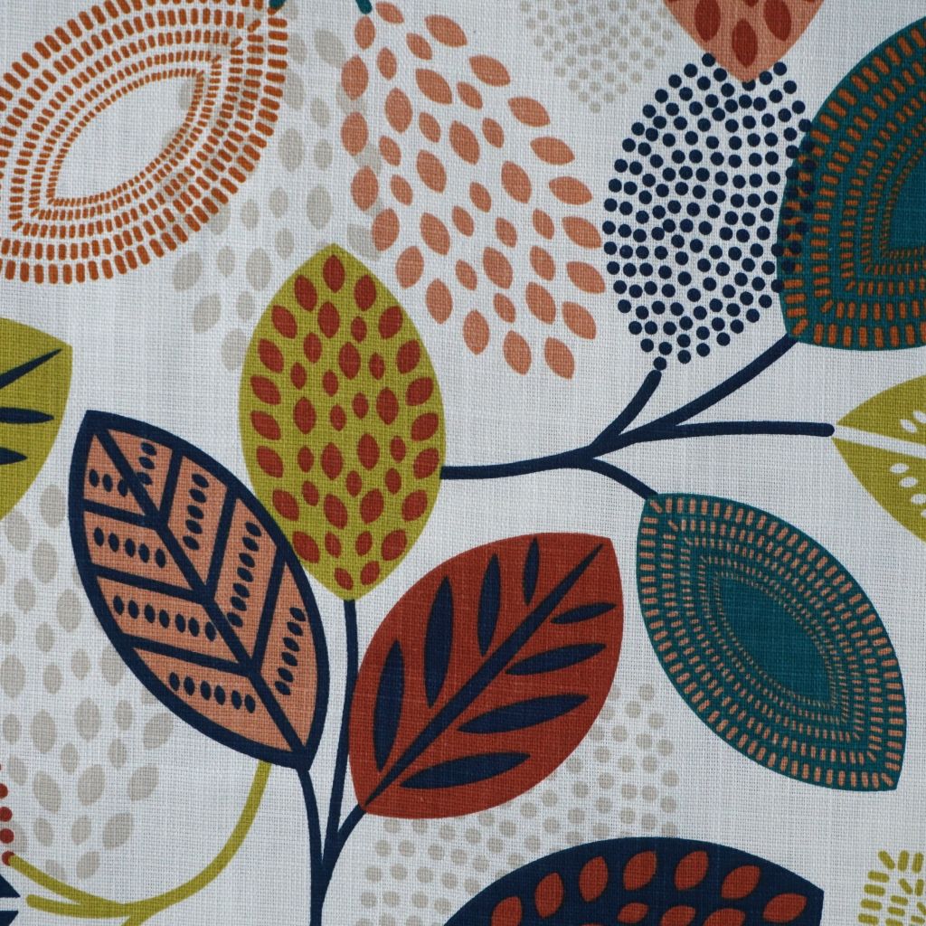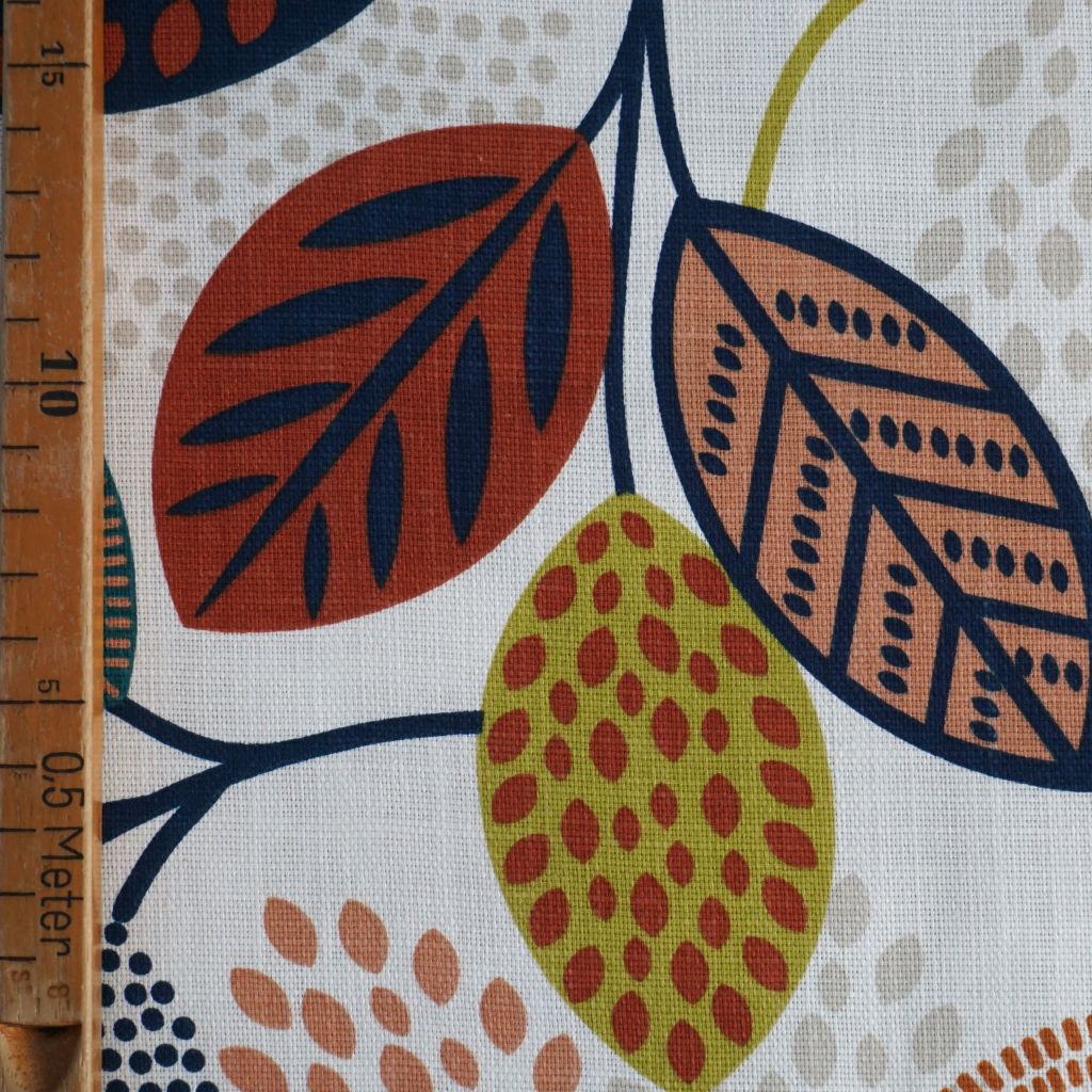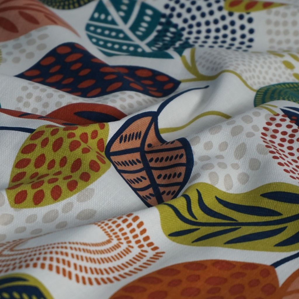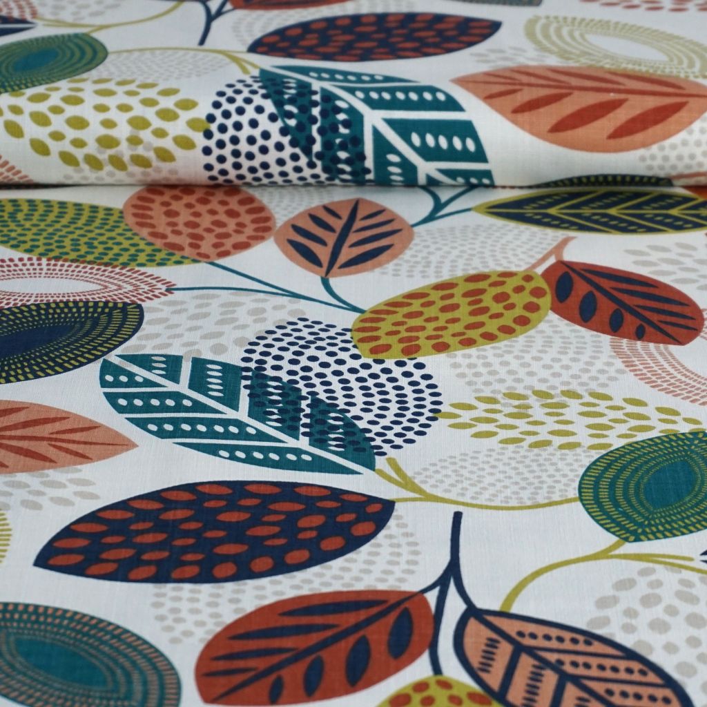 Dekostoff Halbpanama große Blätter mit Muster auf hell