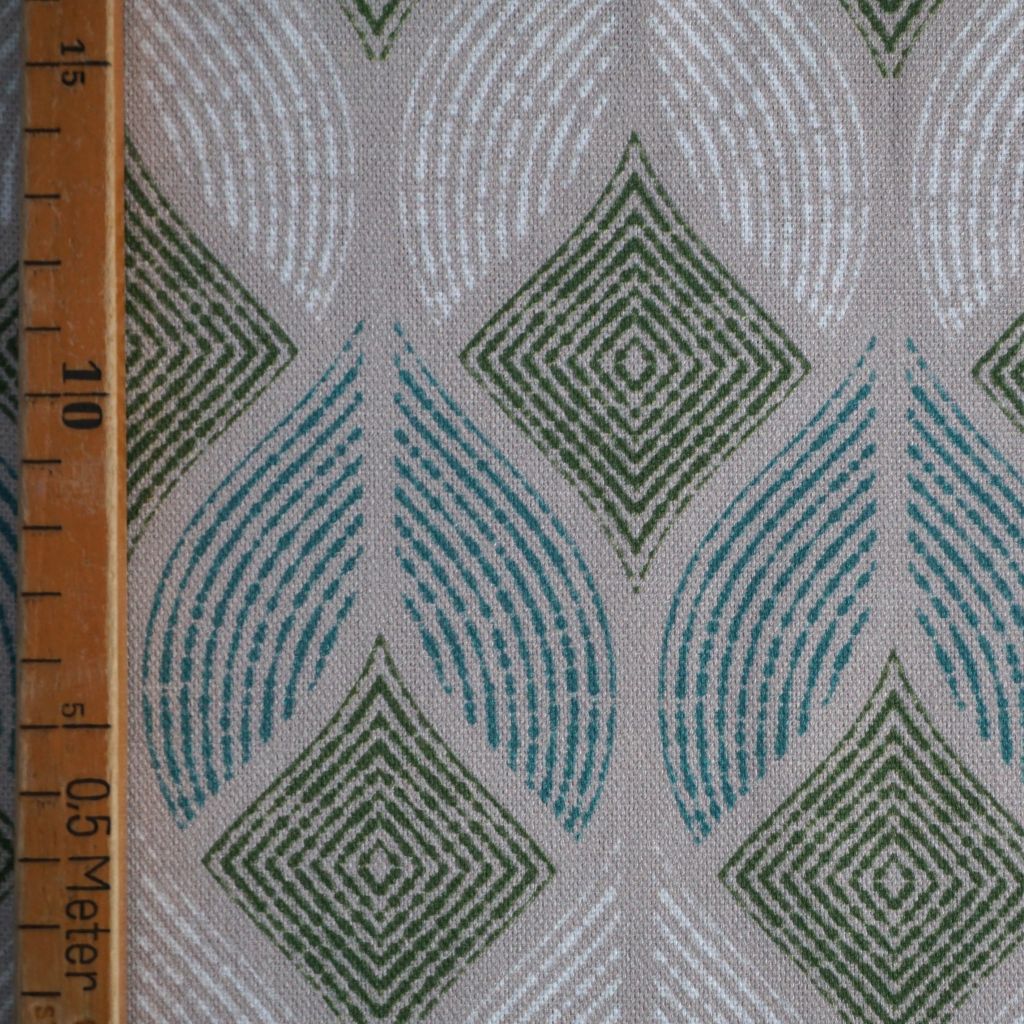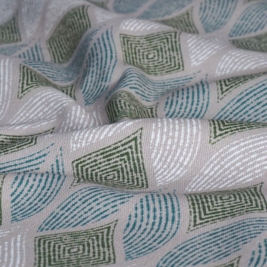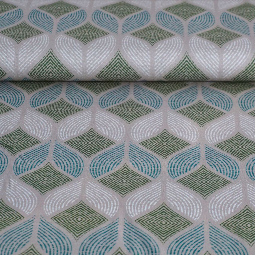 Dekostoff Halbpanama Rauten Formen grün türkis, beige