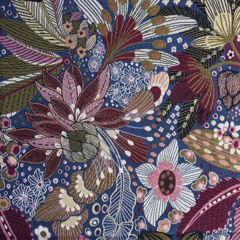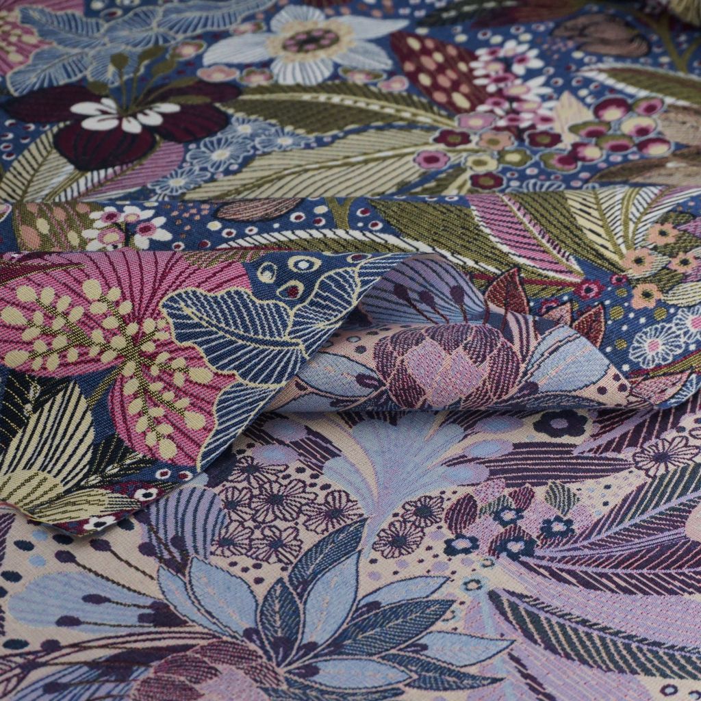 Dekostoff Jacquard Blüten violett blau grün