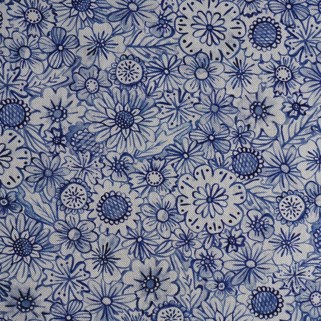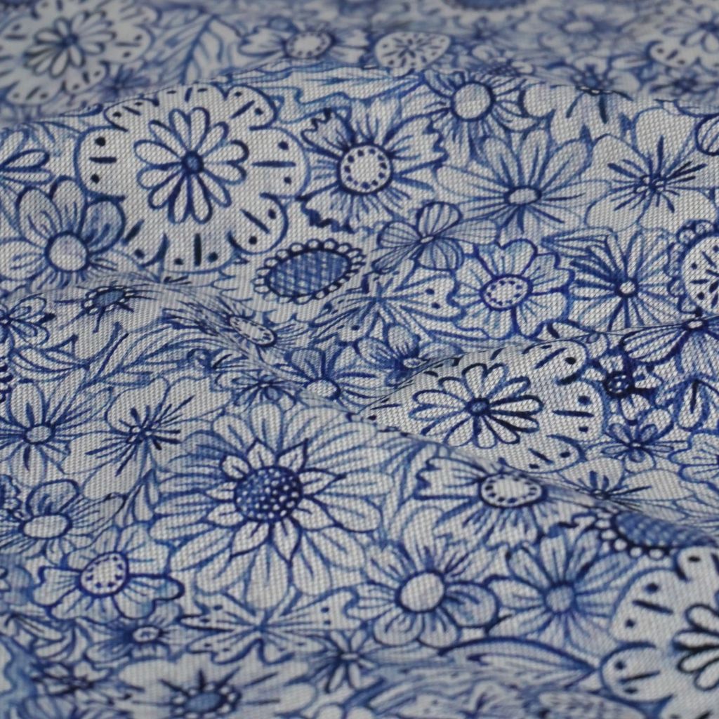 Dekostoff Mischgewebe blaues Blütenmeer Leinenoptik