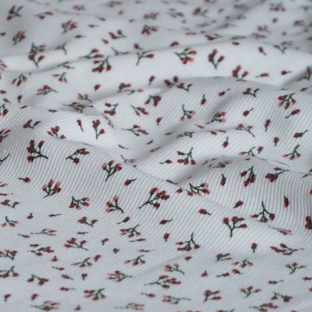 Feinripp-Jersey aus Baumwolle kleine Streublümchen weiß