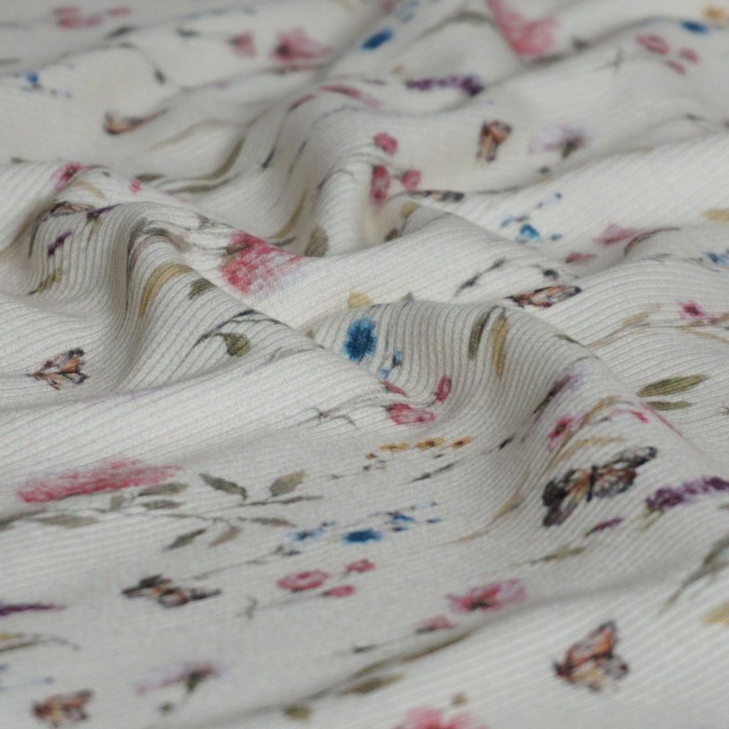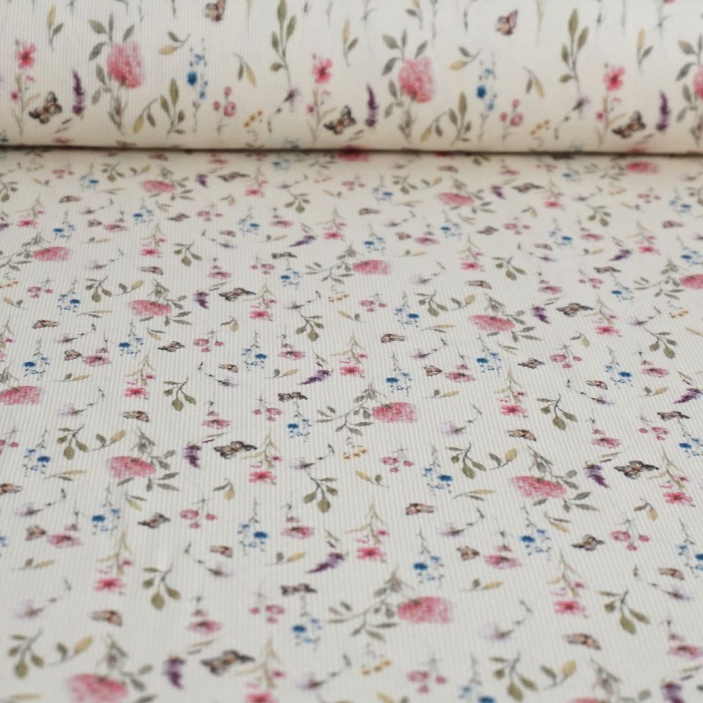 Feinripp-Jersey aus Baumwolle zarte Blumen ecru