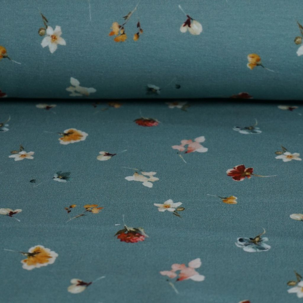 French Terry Blüten Herbarium auf rauchblau – FVJ