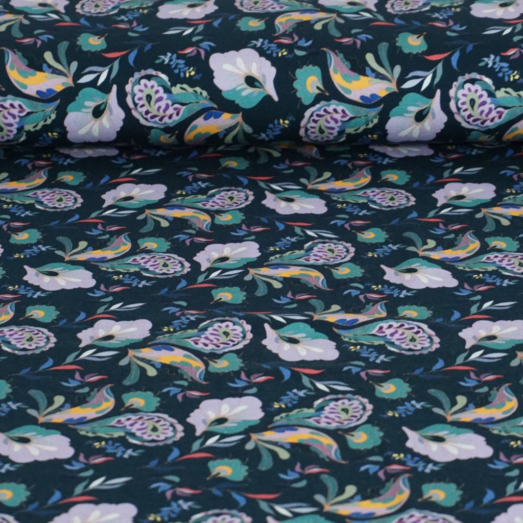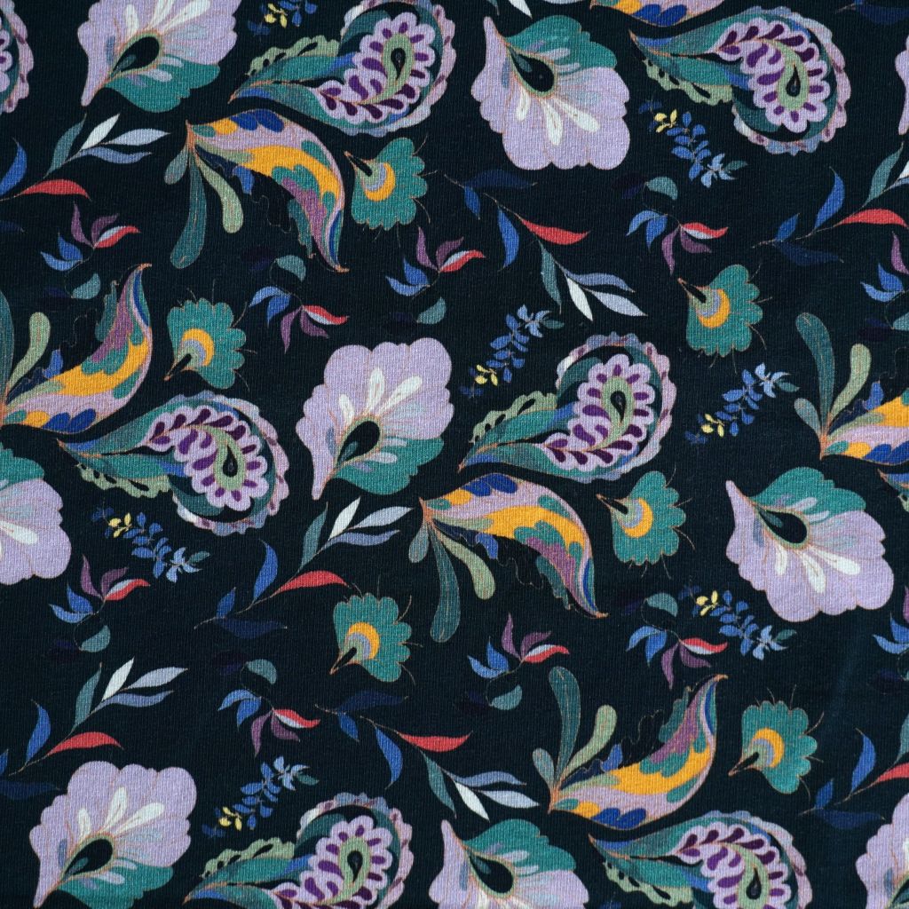 French Terry bunte Verzierungen auf dunkelgrün – FVJ
