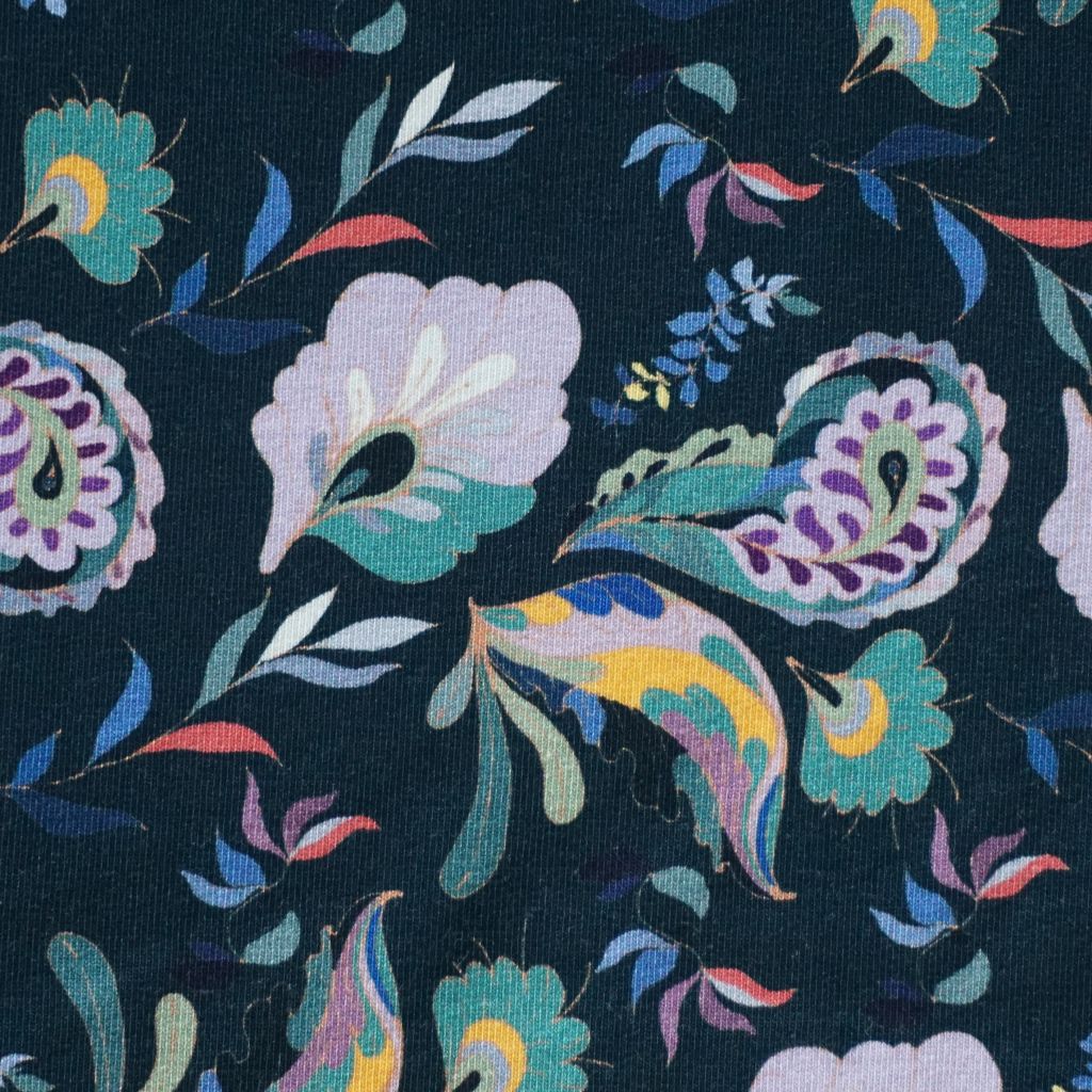 Eigenschaft: elastisch, weich, matt, blickdicht, mittelfest, gleichmäßiges feines Maschenbild, hochwertig bedruckt, pflegeleicht, atmungsaktiv, nimmt Feuchtigkeit gut auf, Rückseite nicht angeraut