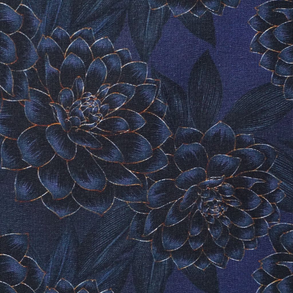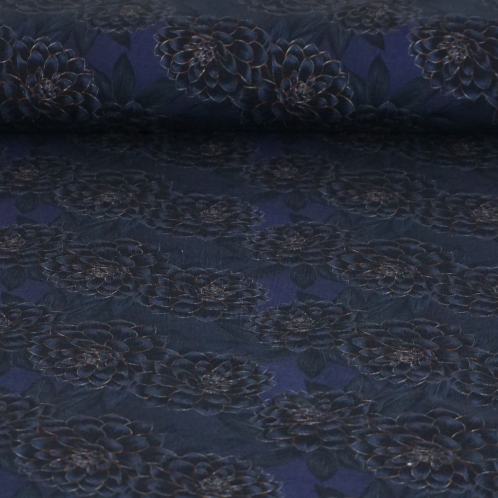 French Terry große Blüten dunkelblau schwarz – FVJ