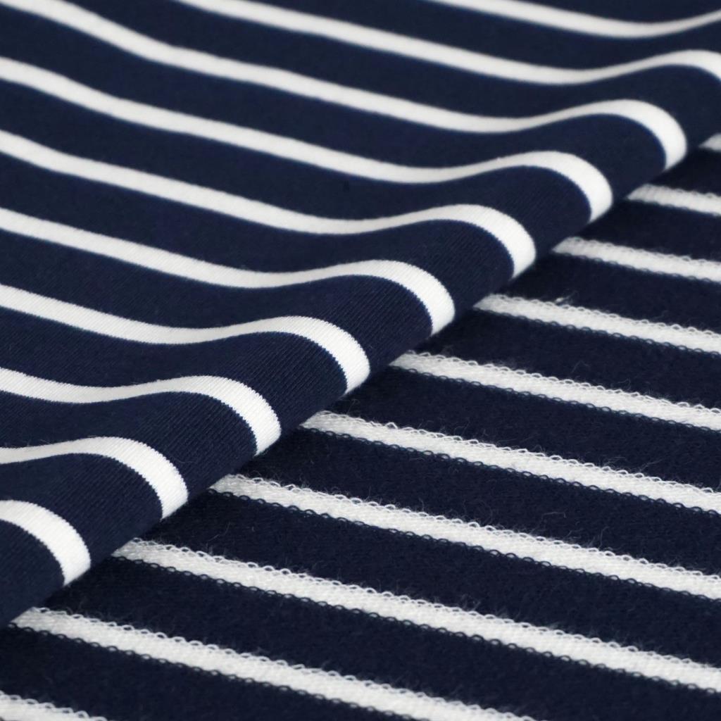 Eigenschaft: Streifenbreite 15mm-5mm, elastisch, weich, matt, blickdicht, mittelfest, gleichmäßiges feines Maschenbild, bedruckt, pflegeleicht, atmungsaktiv, nimmt Feuchtigkeit gut auf, Rückseite nicht angeraut